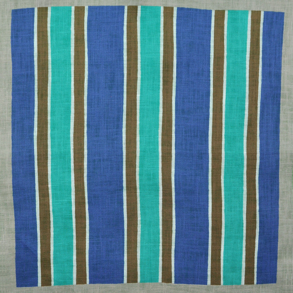 Hoops Linen Pocket Square in Blue, Sky Blue & Brown