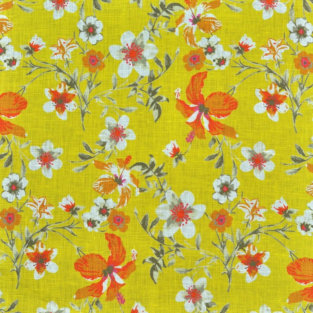 Paisley Linen Pocket Square in Yellow, Lime & Orange