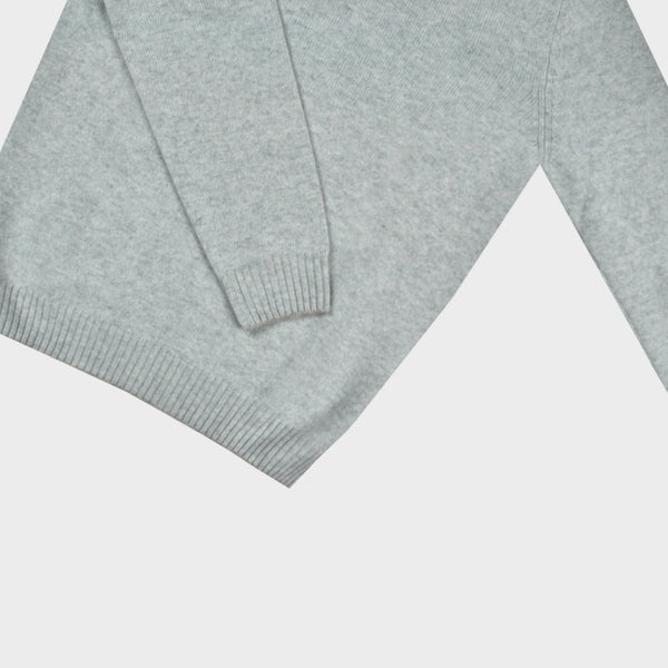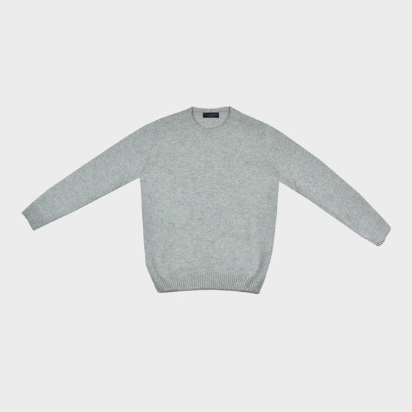 Merino Wool Crew Neck Jumper in Light Grey with Ochre Trim
