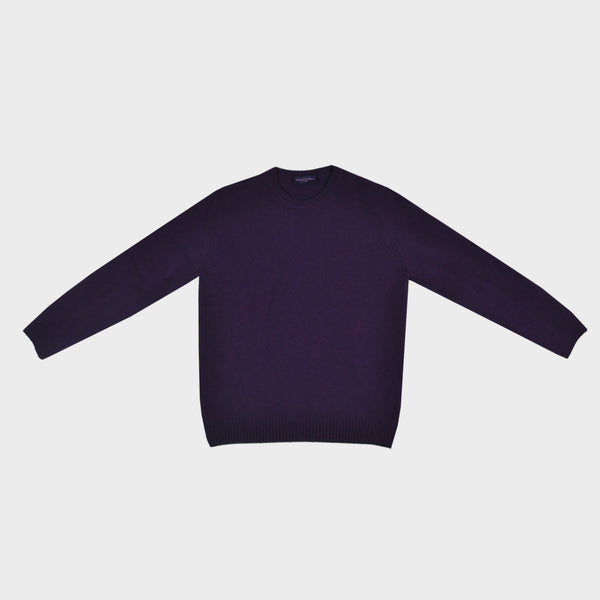 Merino Wool Crew Neck Jumper in Purple with Navy Trim