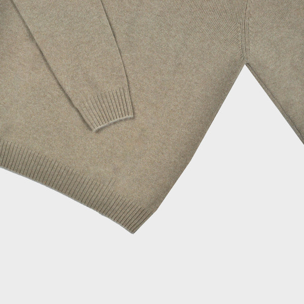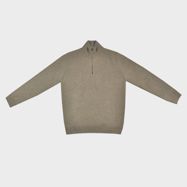 Merino Wool Quarter Zip Jumper in Light Brown with Grey Trim