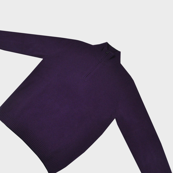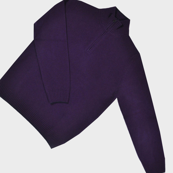 Merino Wool Quarter Zip Jumper in Purple with Navy Trim