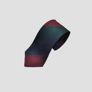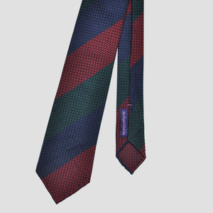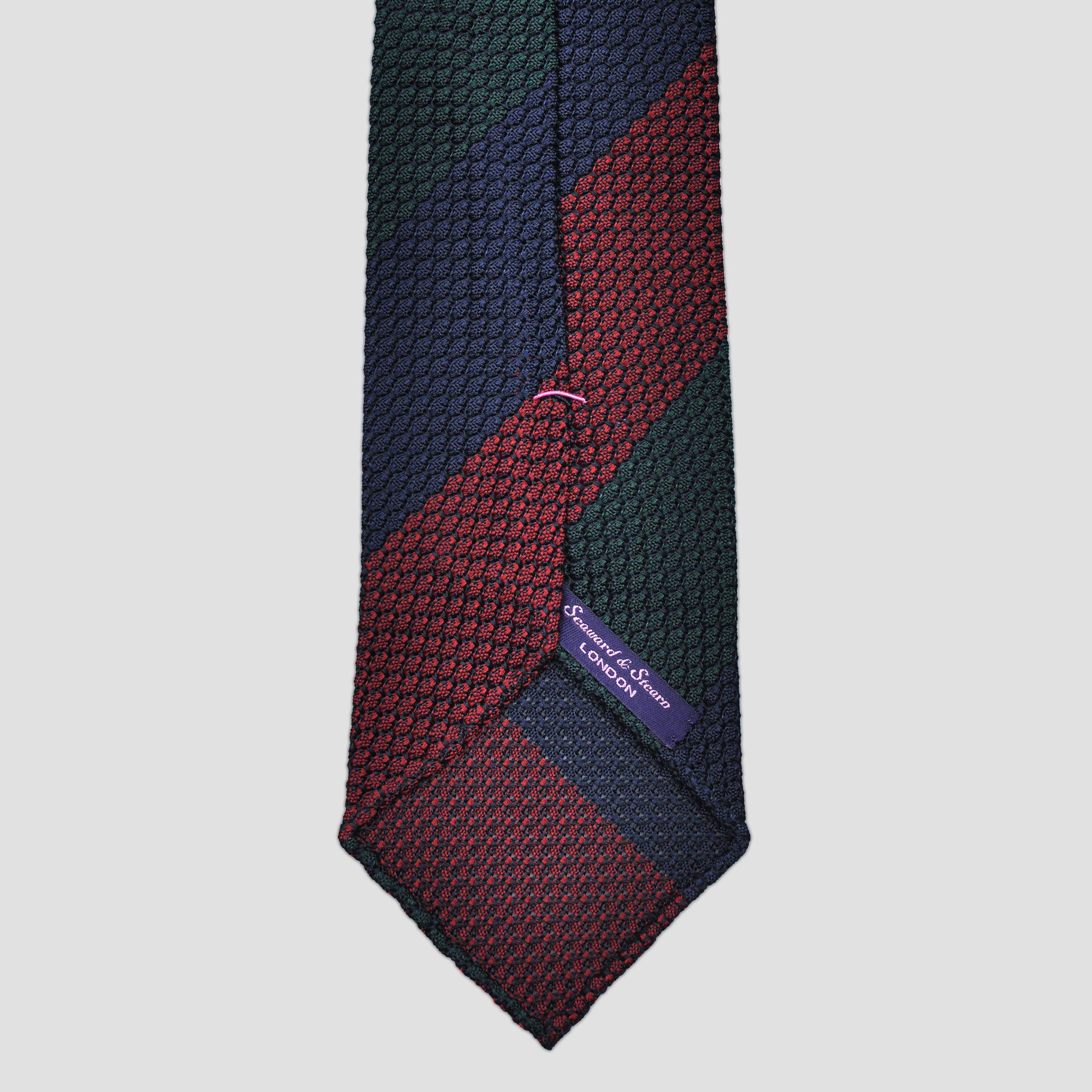 Bold Stripes Handrolled Grenadine Silk Tie in Navy, Green & Claret