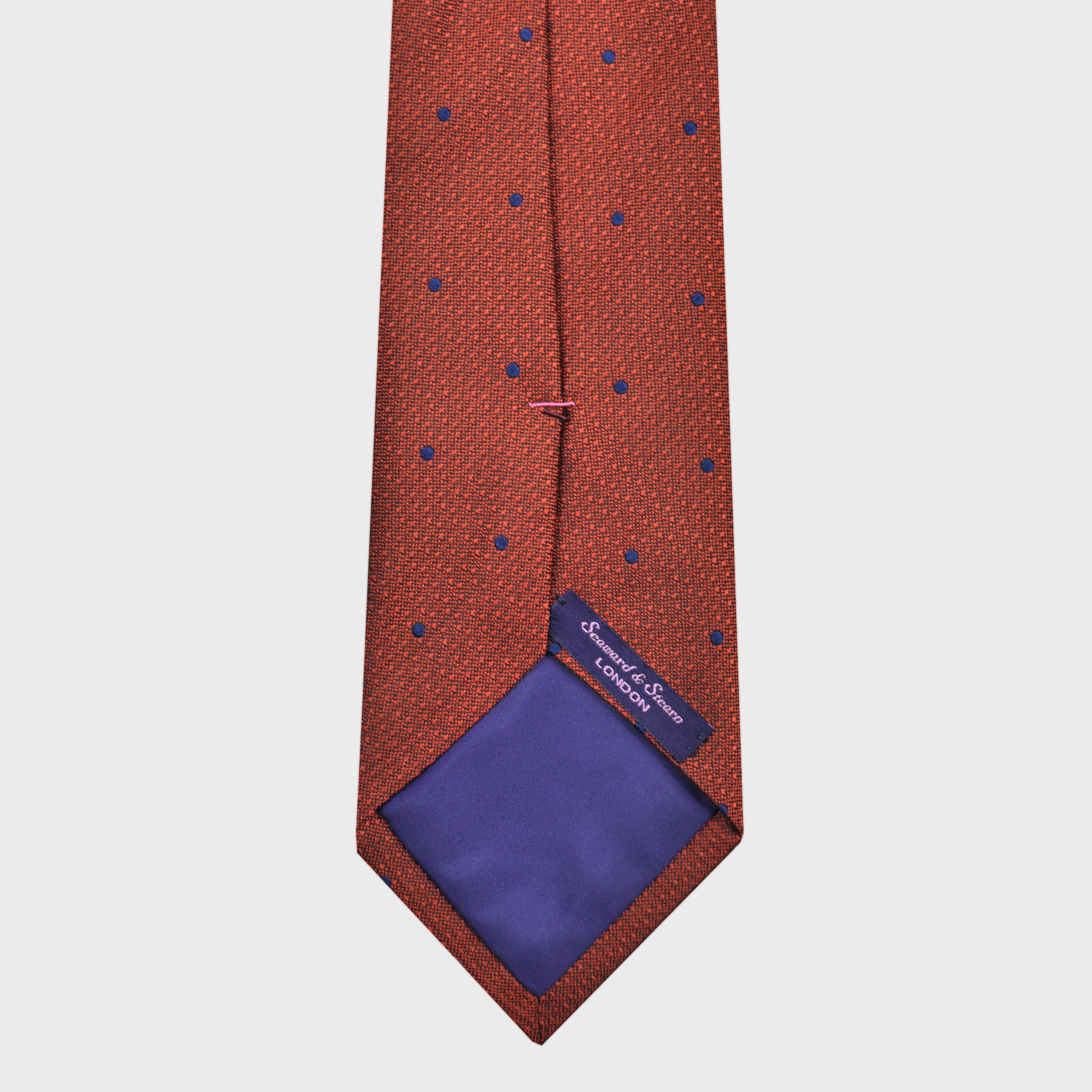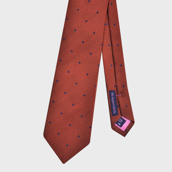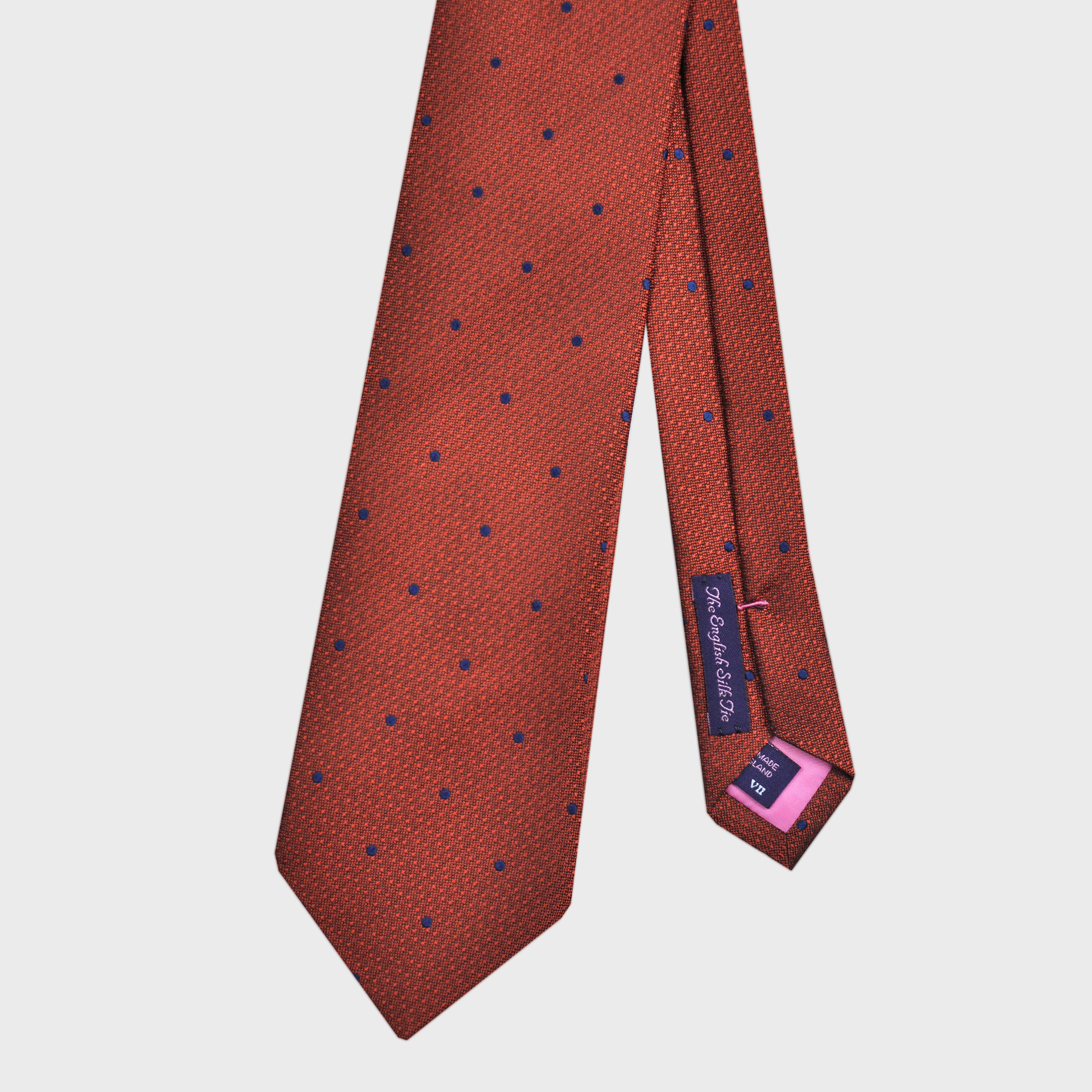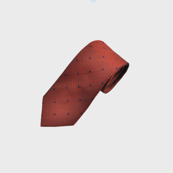 Natte with Polka Dots Woven Silk Tie in Rusty Brown with Blue