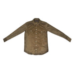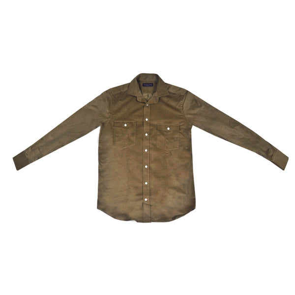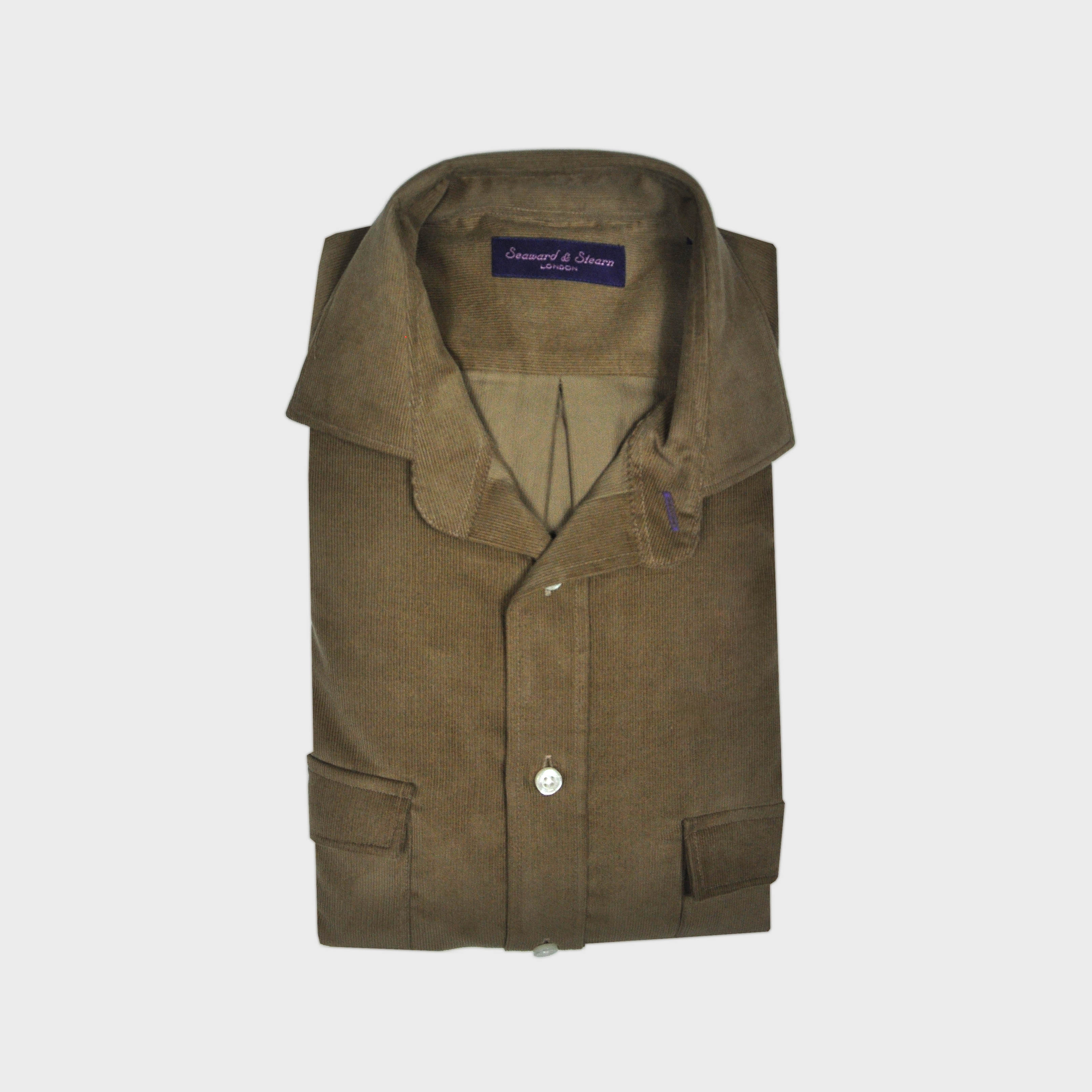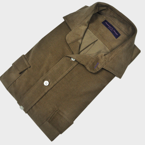 Fine Corduroy Spread Collar Shirt with Double Breast Pockets in Brown Olive