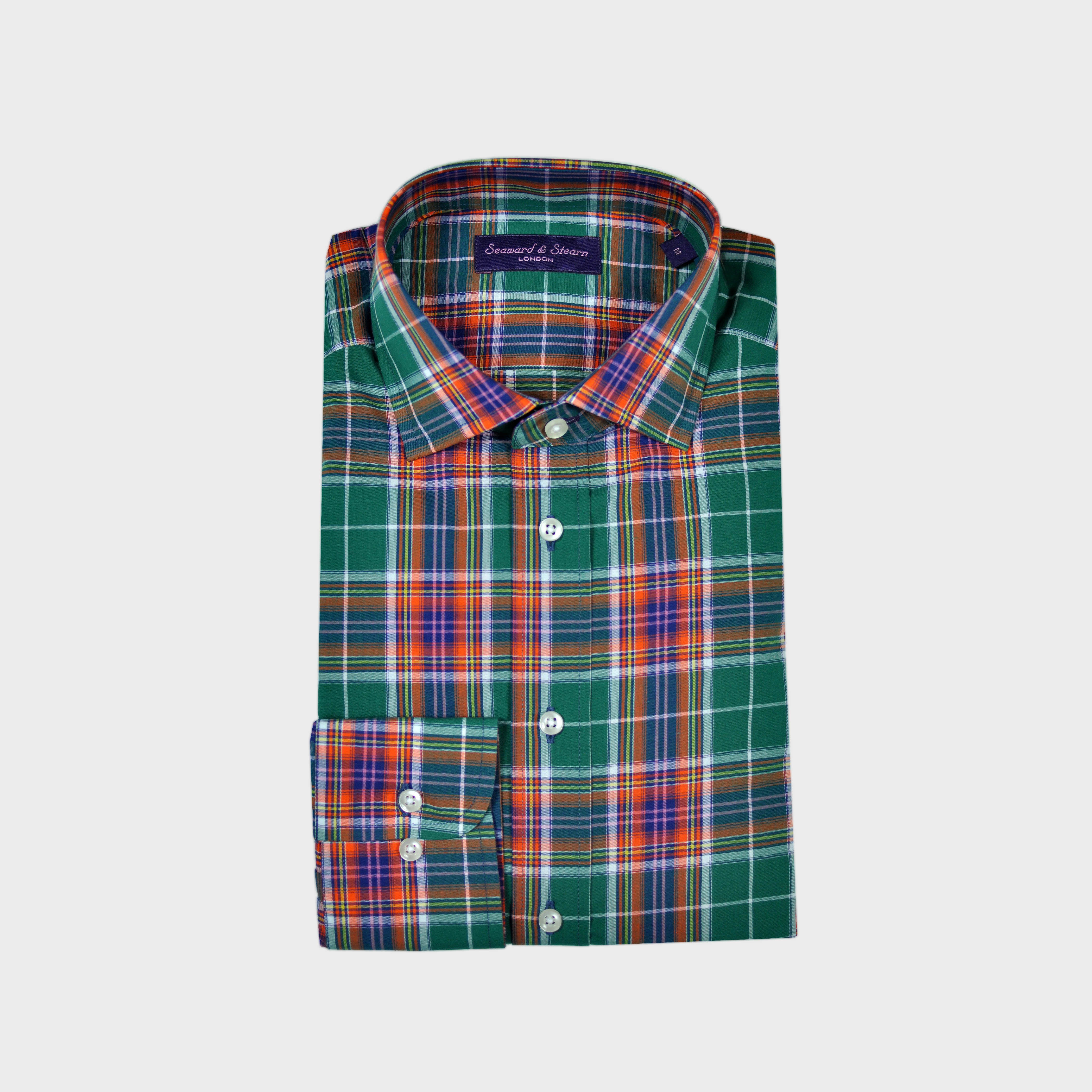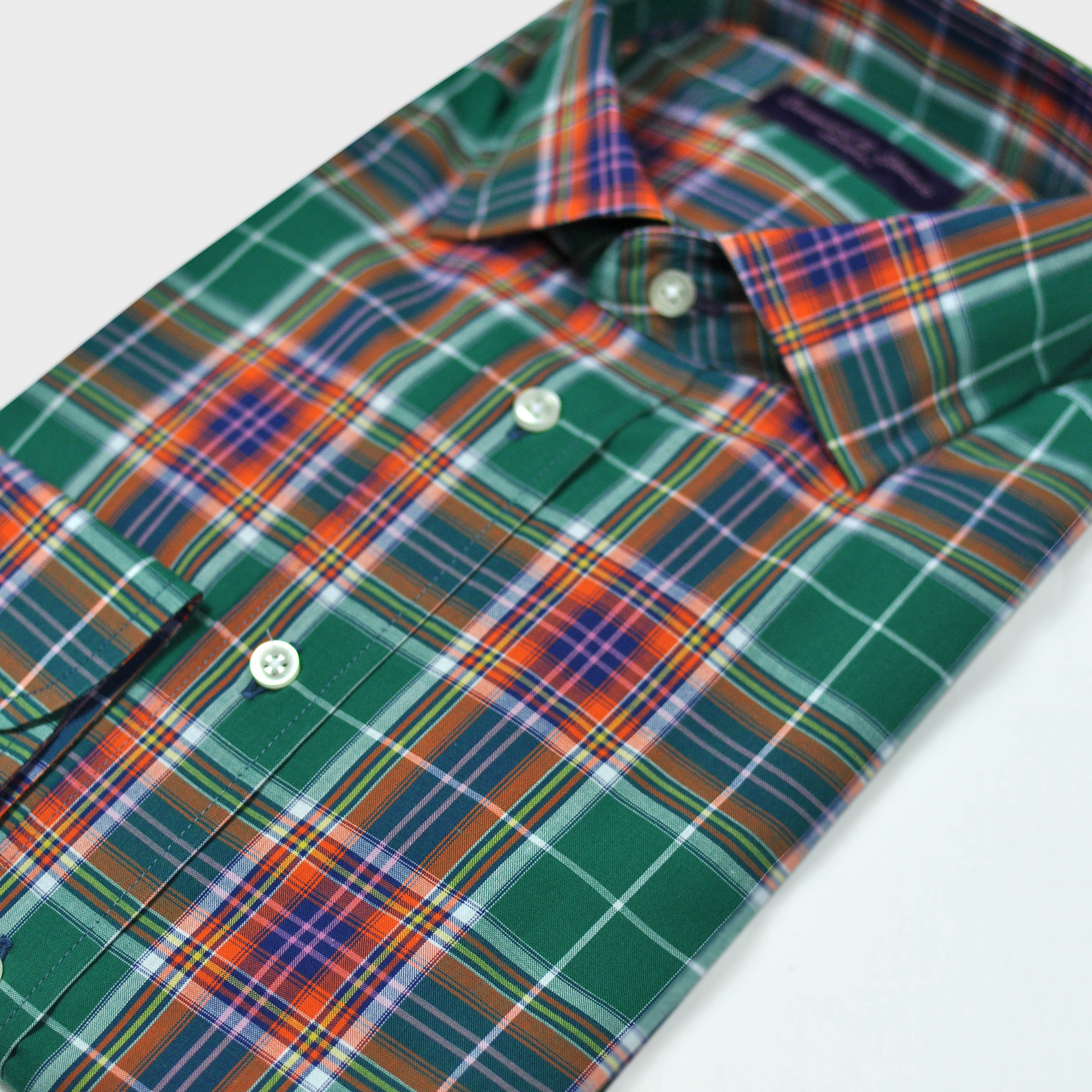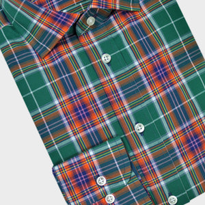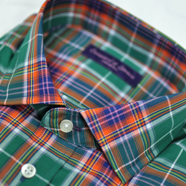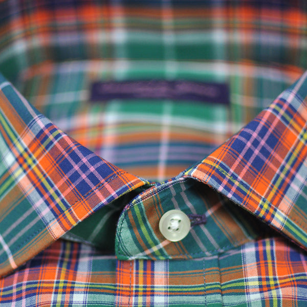 Plaid Spread Collar Sports Shirt in Green & Orange