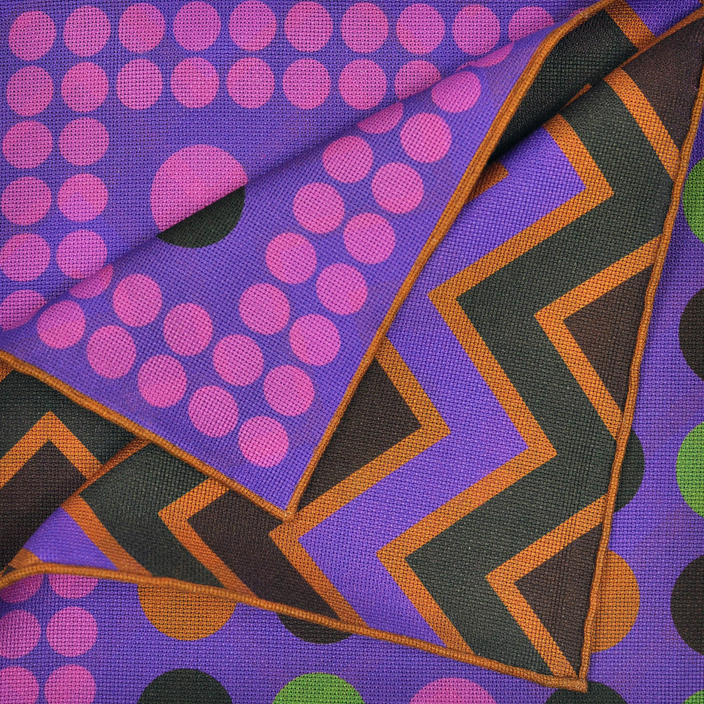 Dots & Zig Zags Reversible Panama Silk Pocket Square in Pink, Purple, Green & Orange