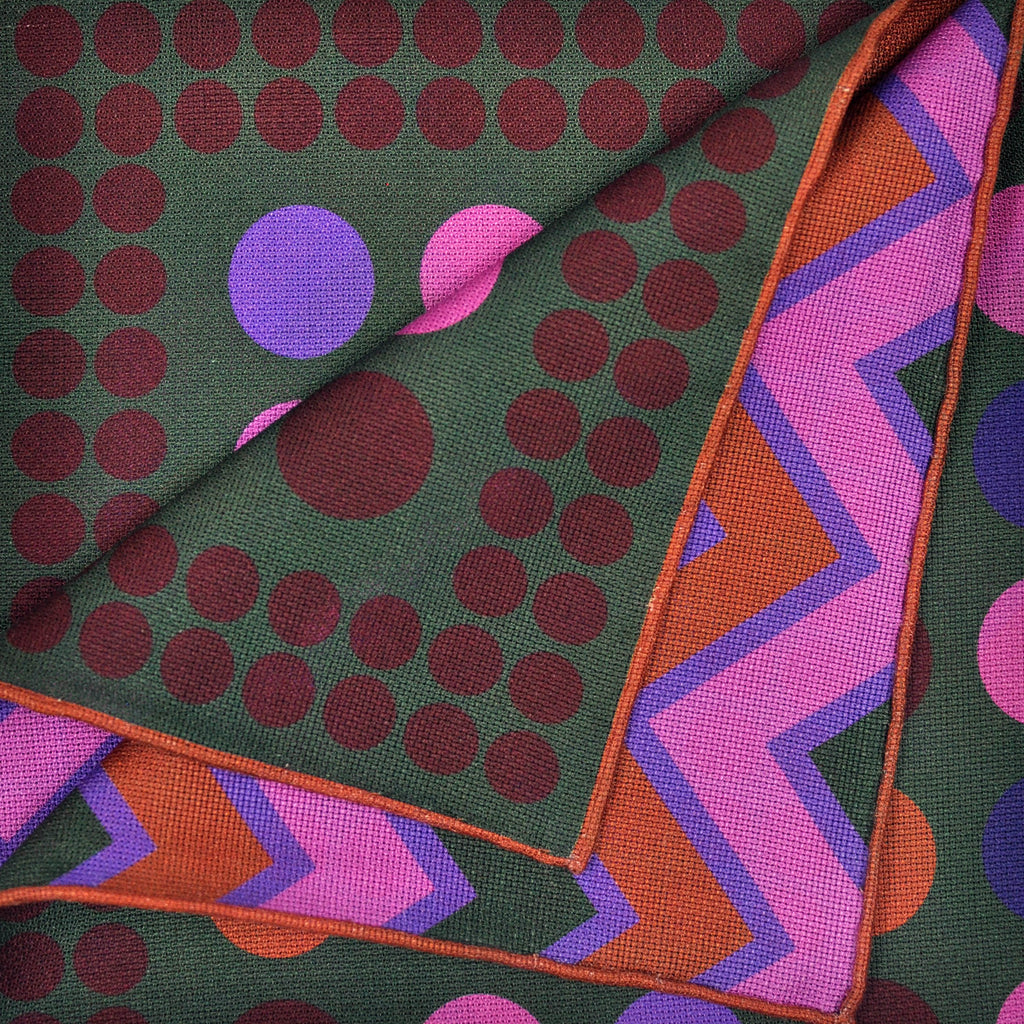 Dots & Zig Zags Reversible Panama Silk Pocket Square Green, Claret, Pink & Orange