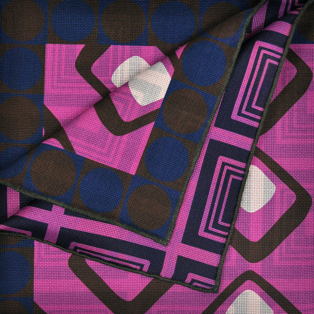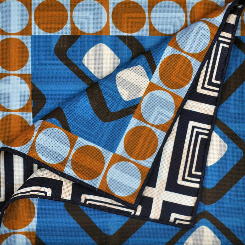 Retro Geo's Reversible Panama Silk Pocket Square in Blues & Browns