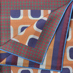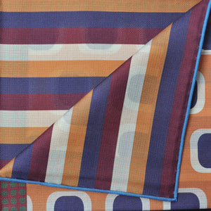 Dots, Geo's & Stripes Reversible Panama Silk Pocket Square in Blue, Orange & Claret