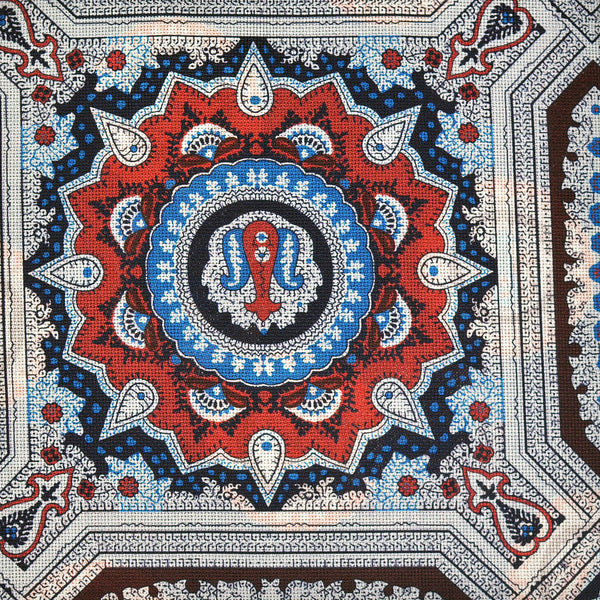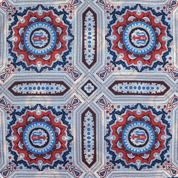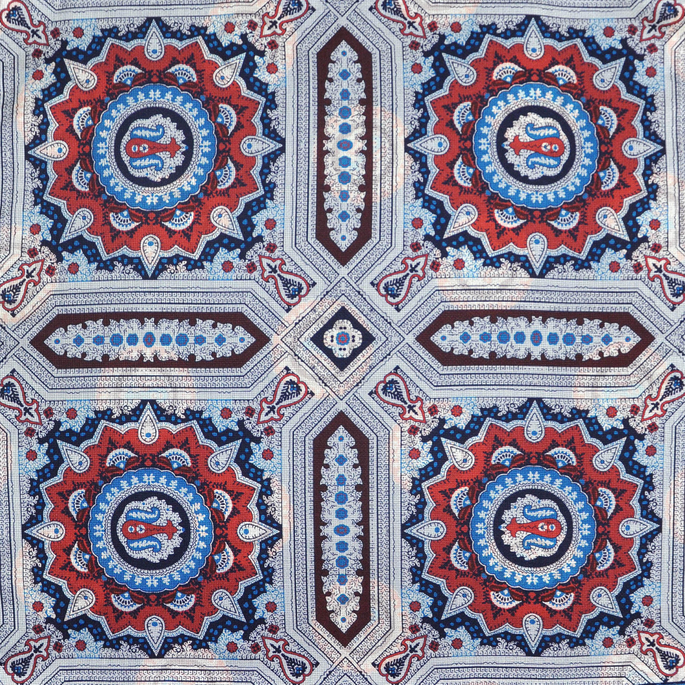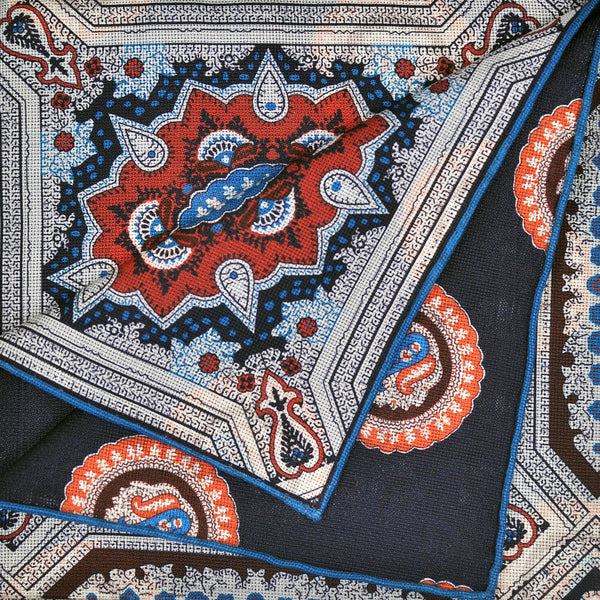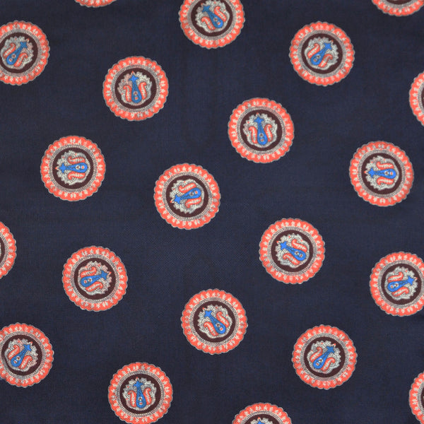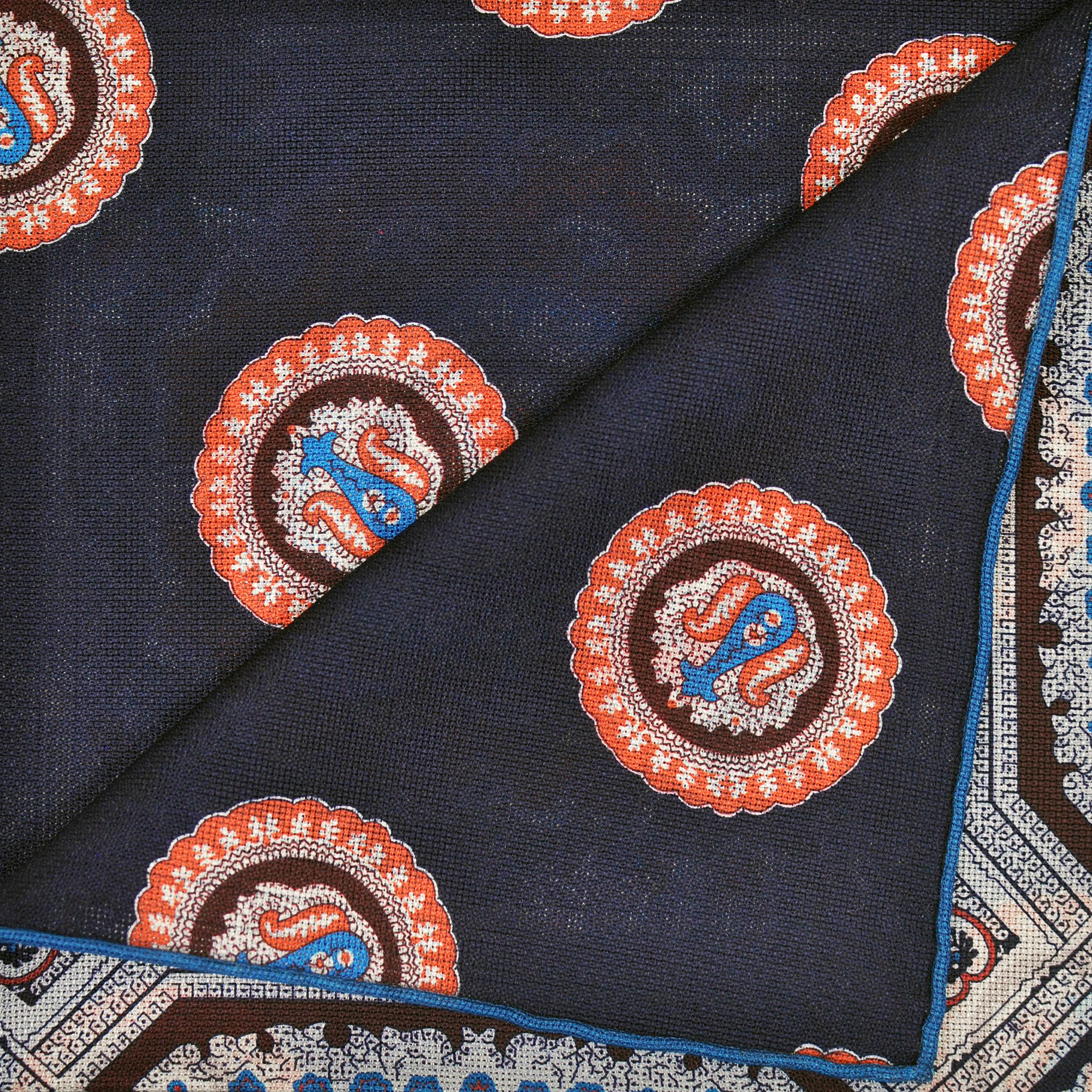 Medallions Reversible Panama Silk Pocket Square in Navy, White, Blue & Orange
