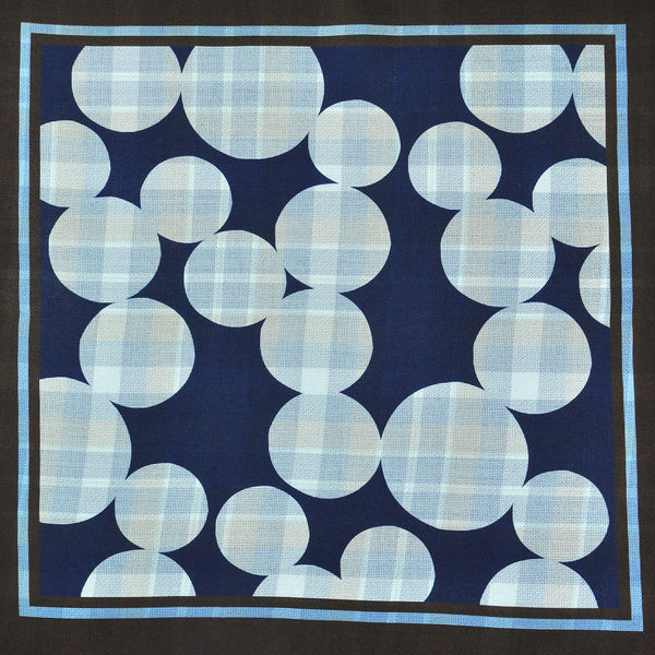 Big Dots & Checks Reversible Panama Silk Pocket Square in Navy, Blue & Brown