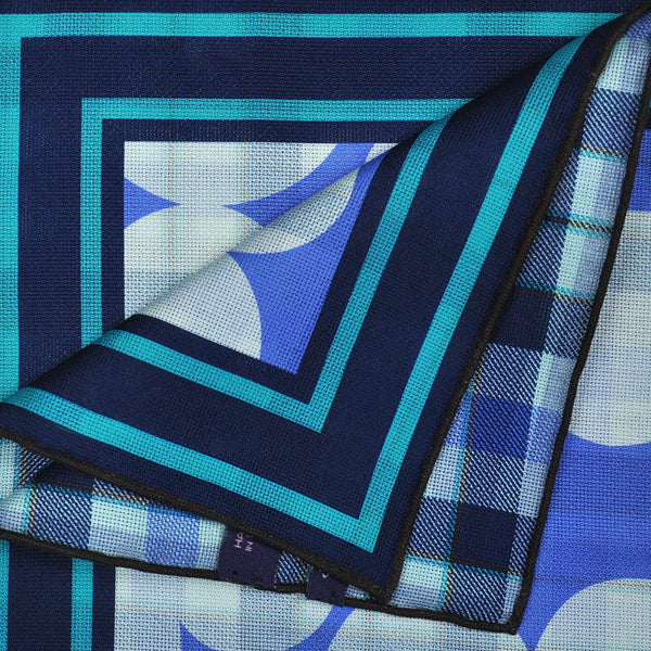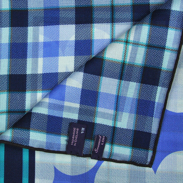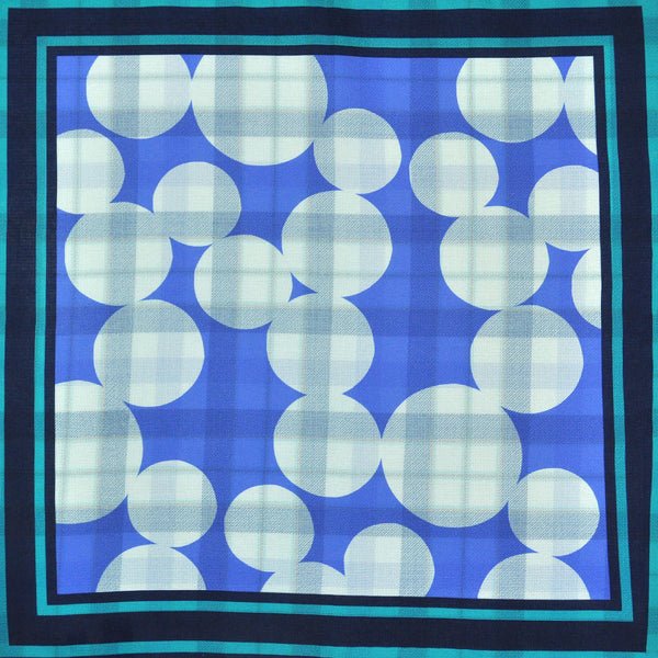 Big Dots & Checks Reversible Panama Silk Pocket Square in Navy, Blue & Teal