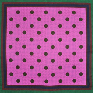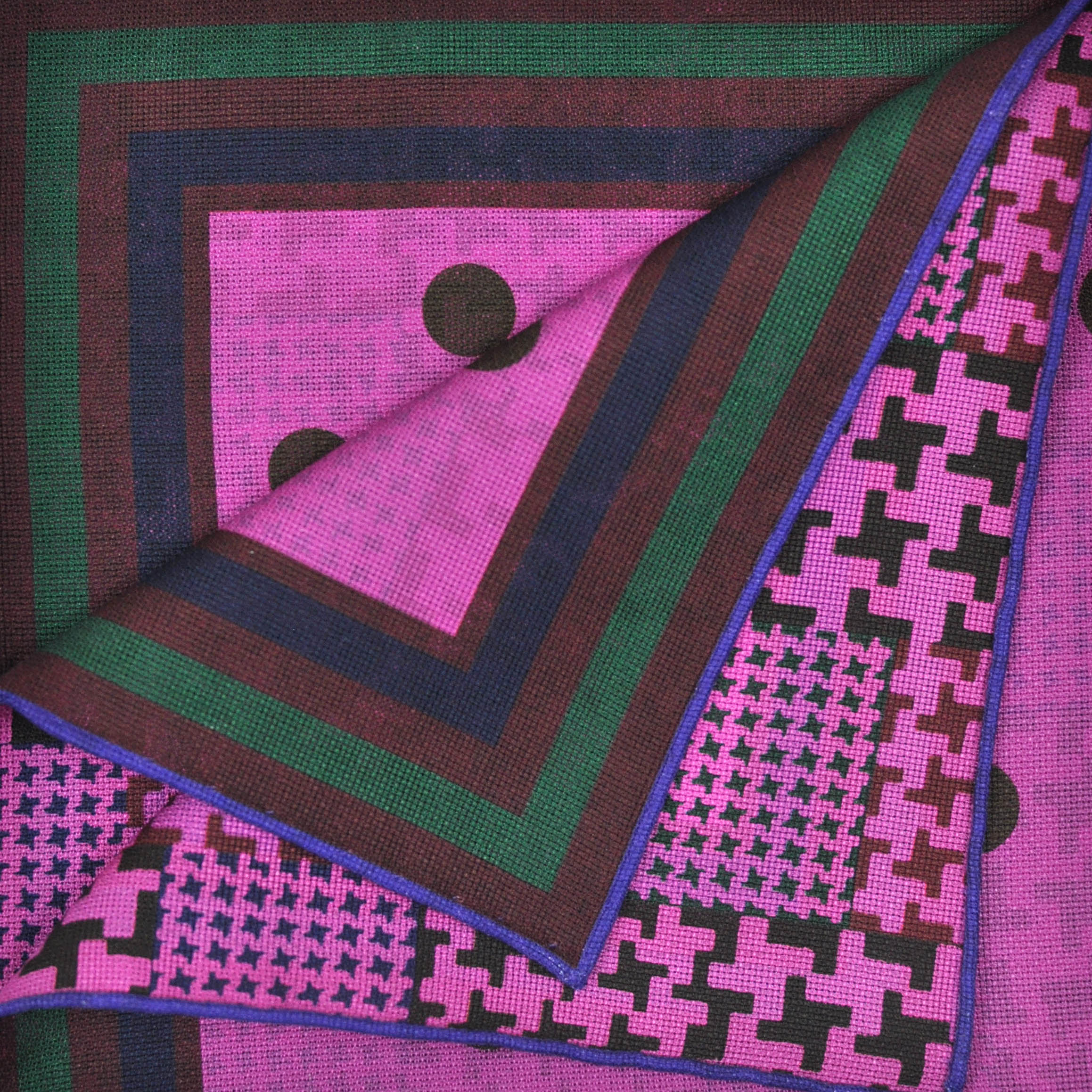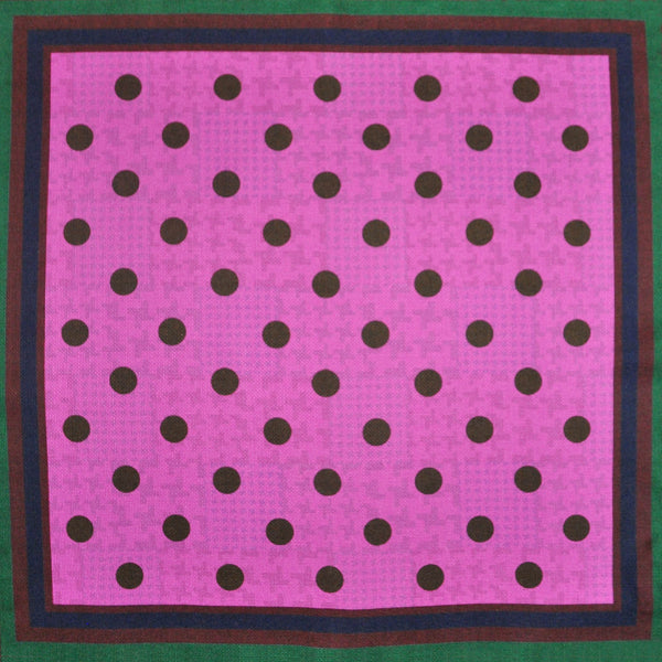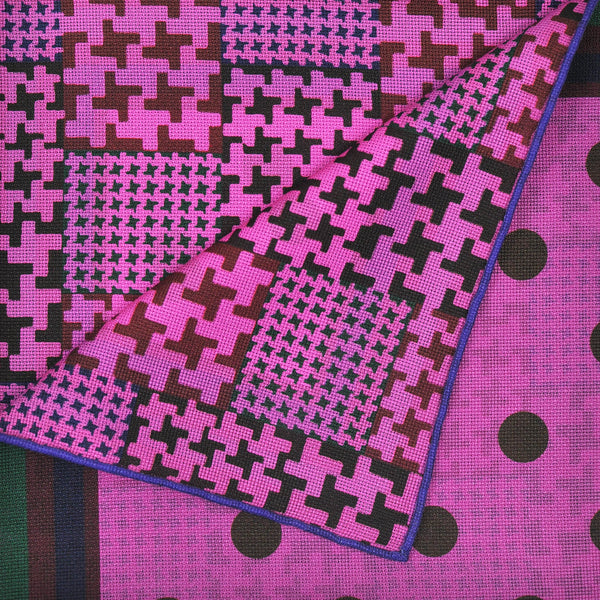 Dots & Puppy Tooth Reversible Panama Silk Pocket Square in Pink, Green, Brown & Blue