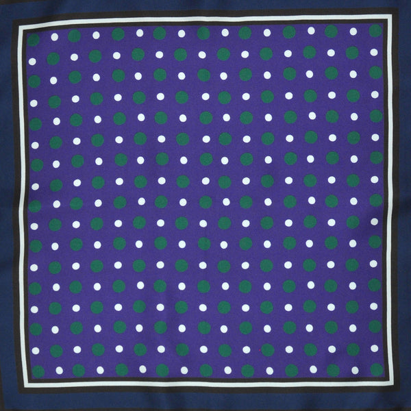 Dots with Stripe Border English Silk Pocket Square in Blue & Green & Brown