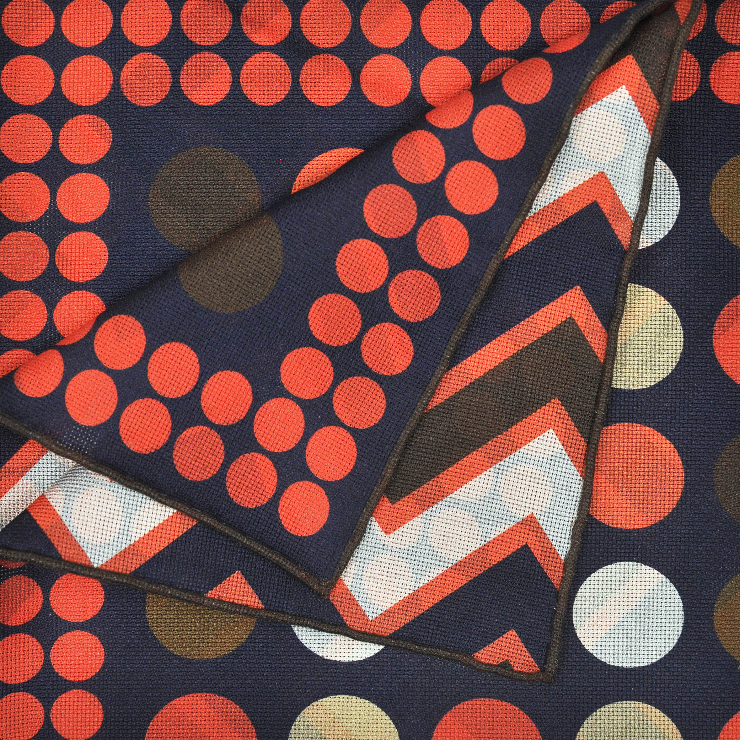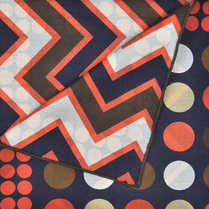 Dots & Zig Zags Reversible Panama Silk Pocket Square in Navy, Orange, Brown & White