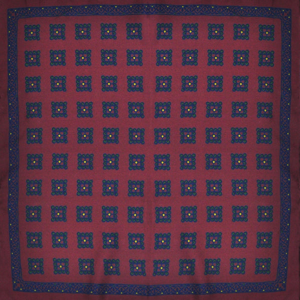 Florets English Silk Pocket Square in Claret & Blue