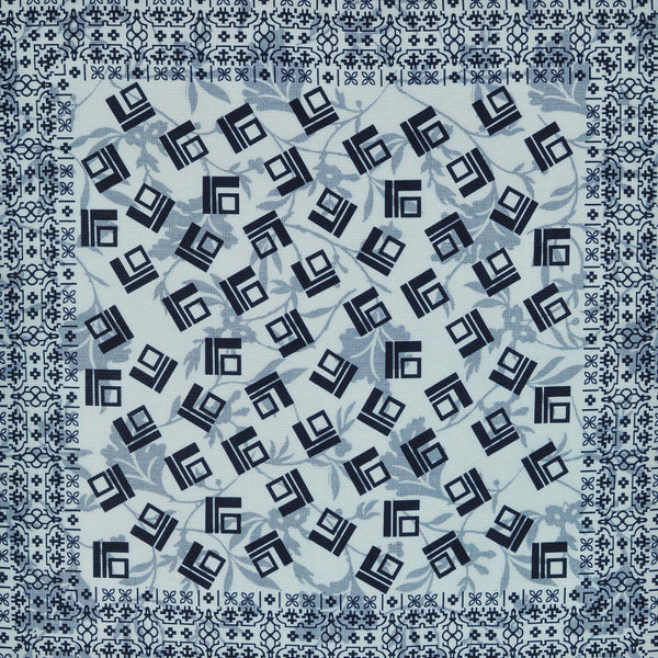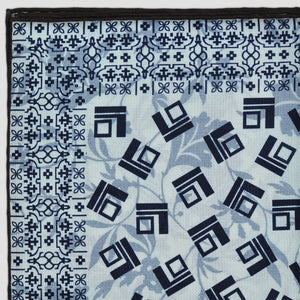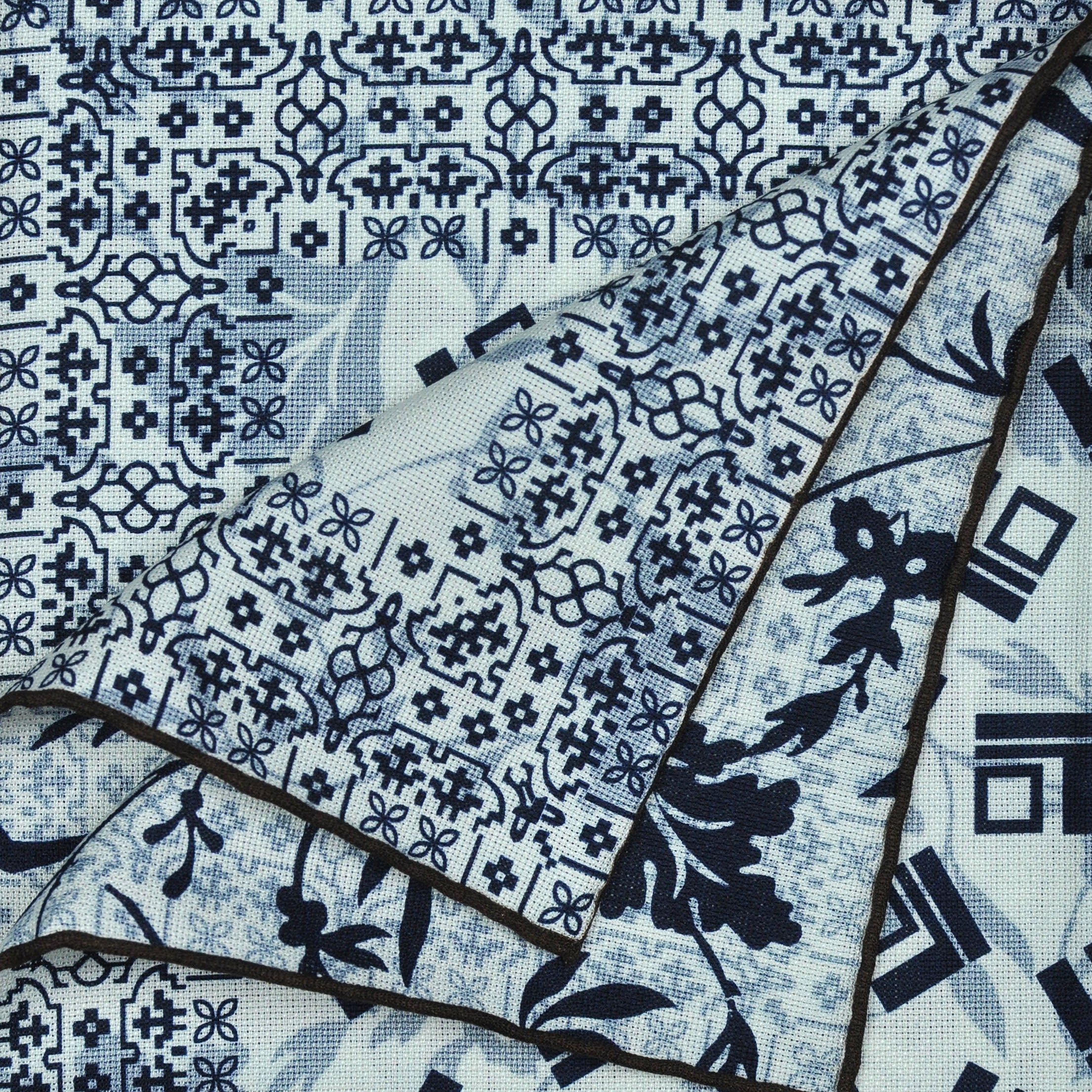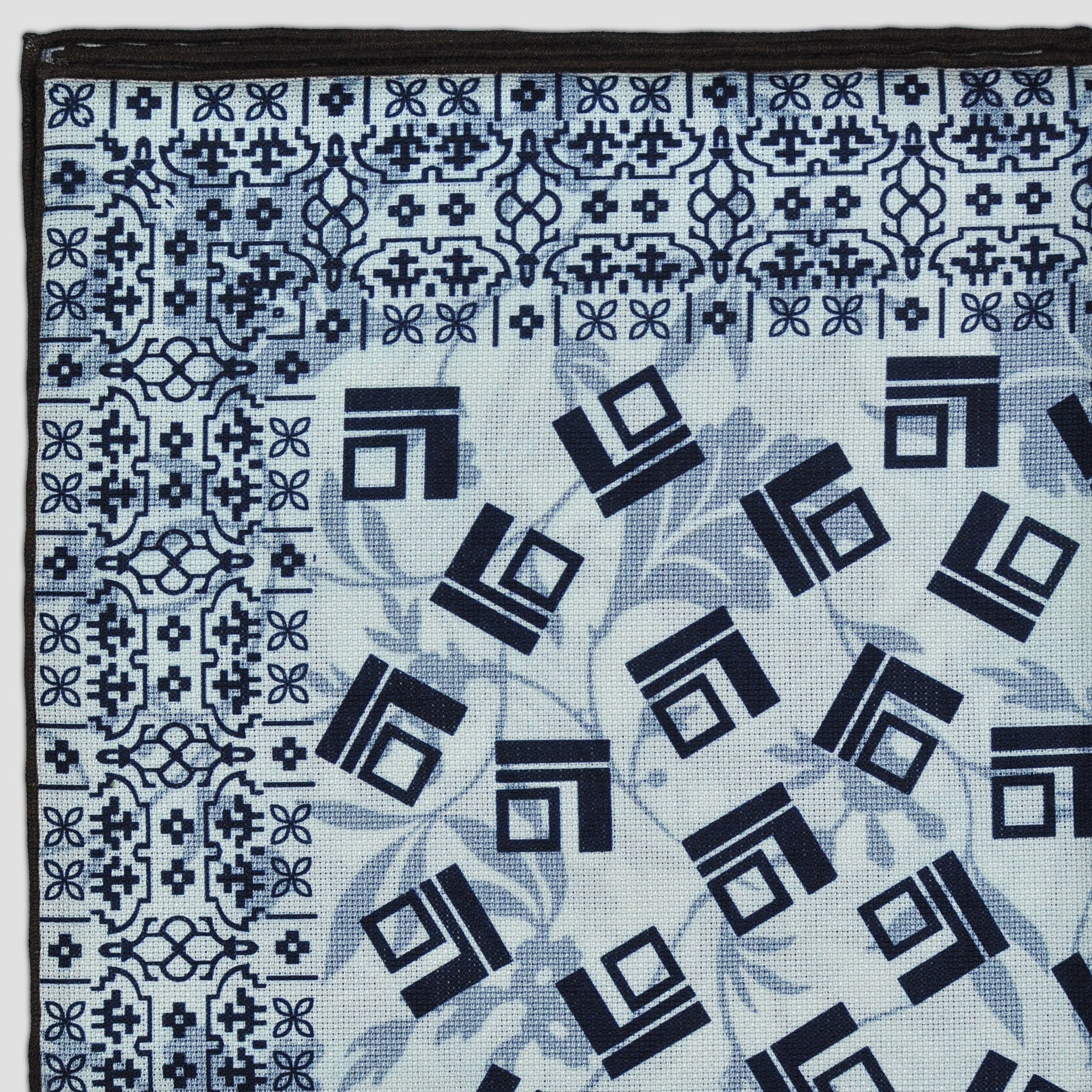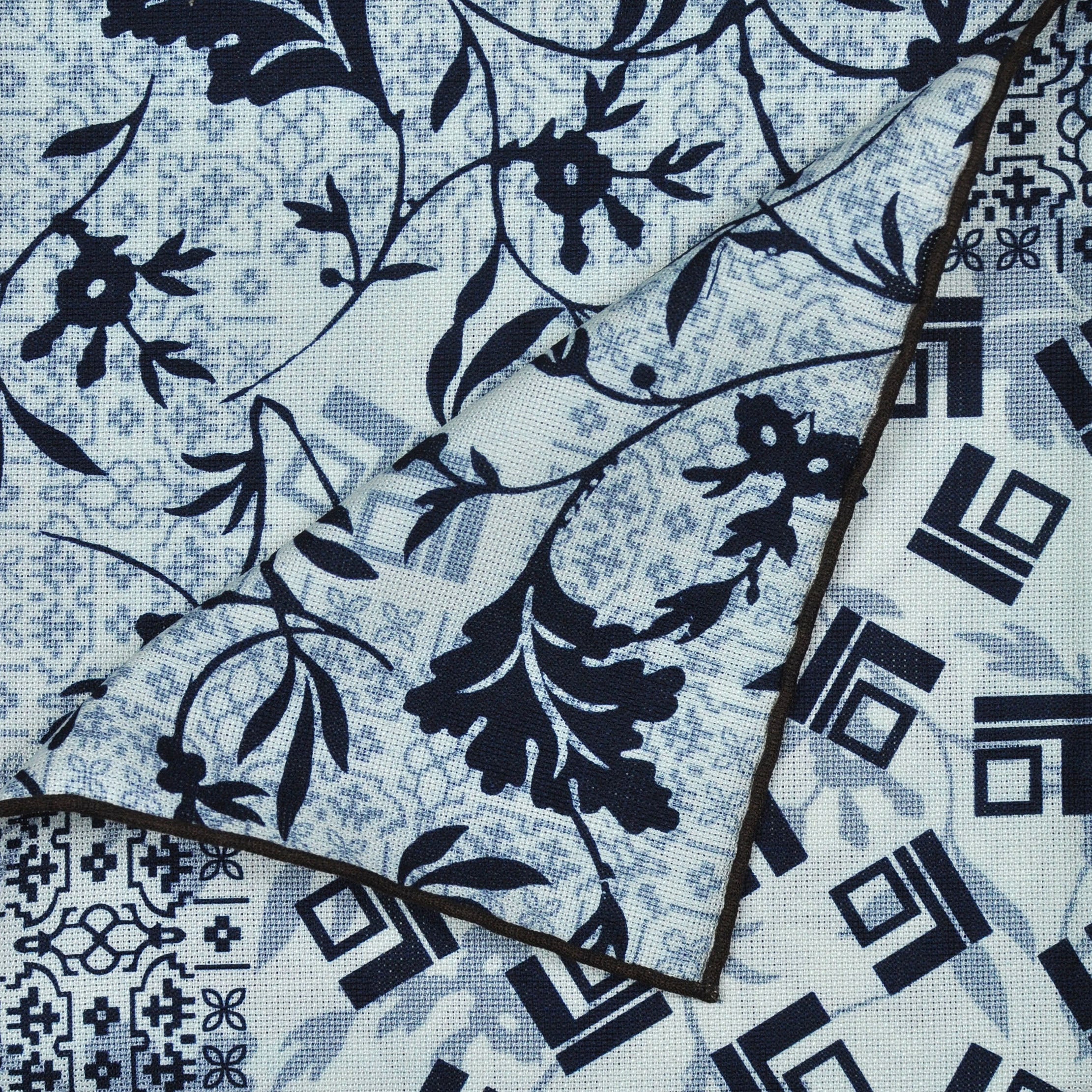Geo's & Flora Reversible Panama Silk Pocket Square in White & Navy