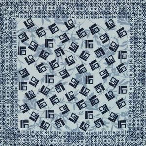 A deco style shape surrounded by a lovely border pattern, with a subtle leafy design on the reverse. All brought together with a dynamic palette and balance of colours. Simply a stunning square.