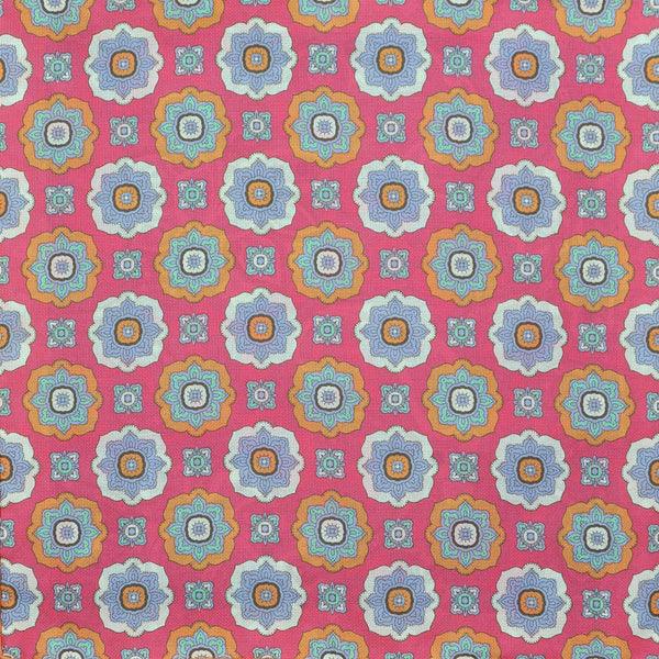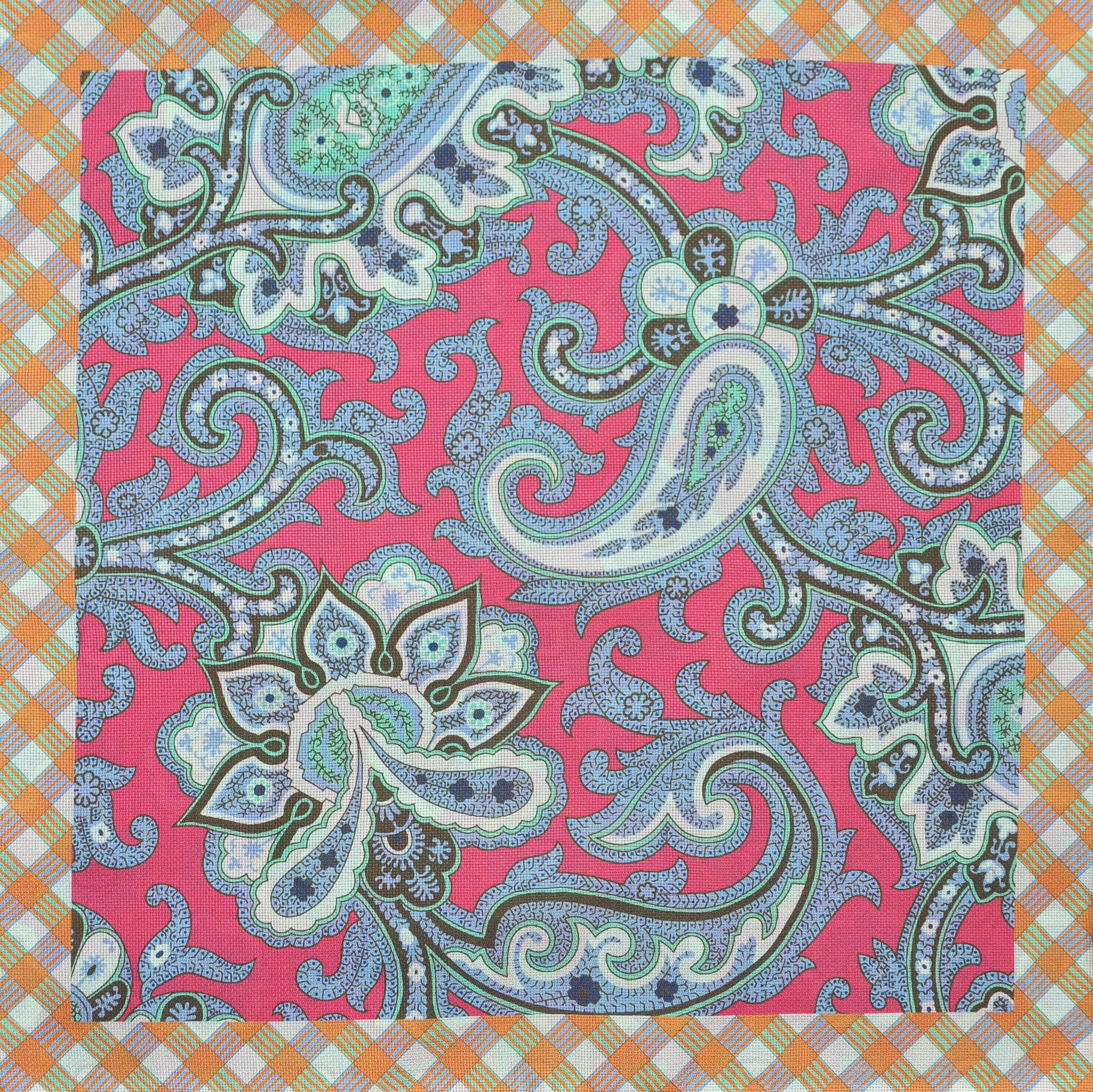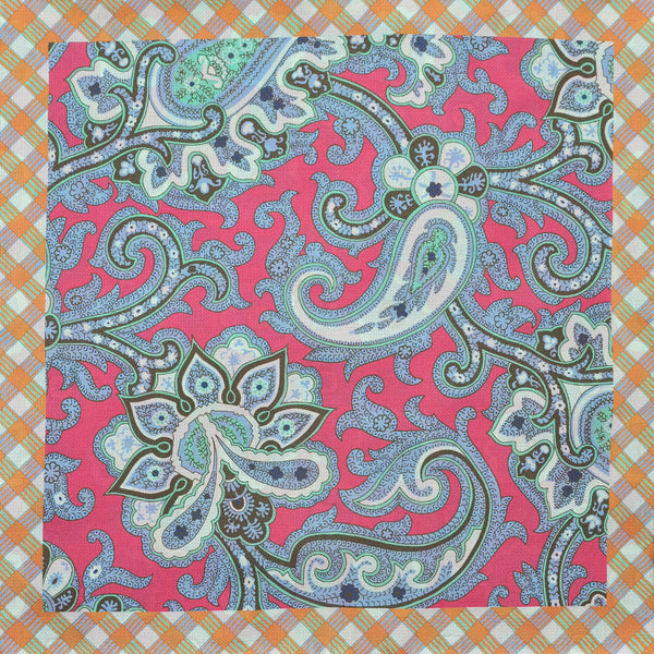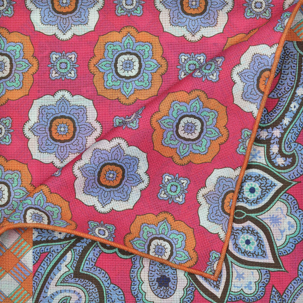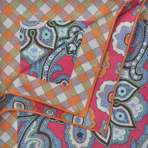 Paisley & Florets Reversible Panama Silk Pocket Square in Pink & Orange & Blue