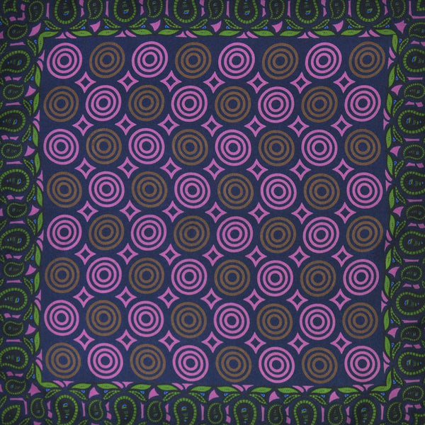 Targets with Teardop Border English Silk Pocket Square in Pink & Brown & Green