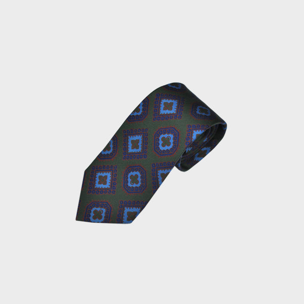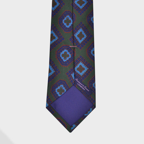 Classic English Madder Medallion Silk Tie in Green & Navy & Blue