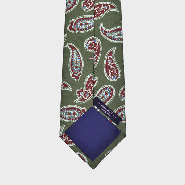 Classic Teardrops in Burgundy & Light Blue on Olive Green Silk Tie