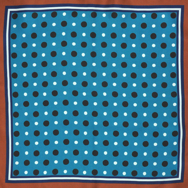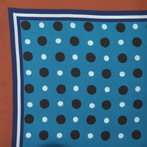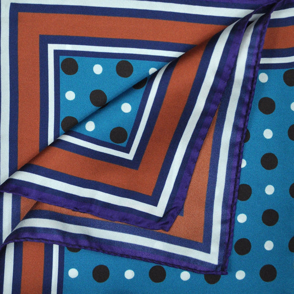Dots with Stripe Border English Silk Pocket Square in Blue & Purple & Rusty Brown