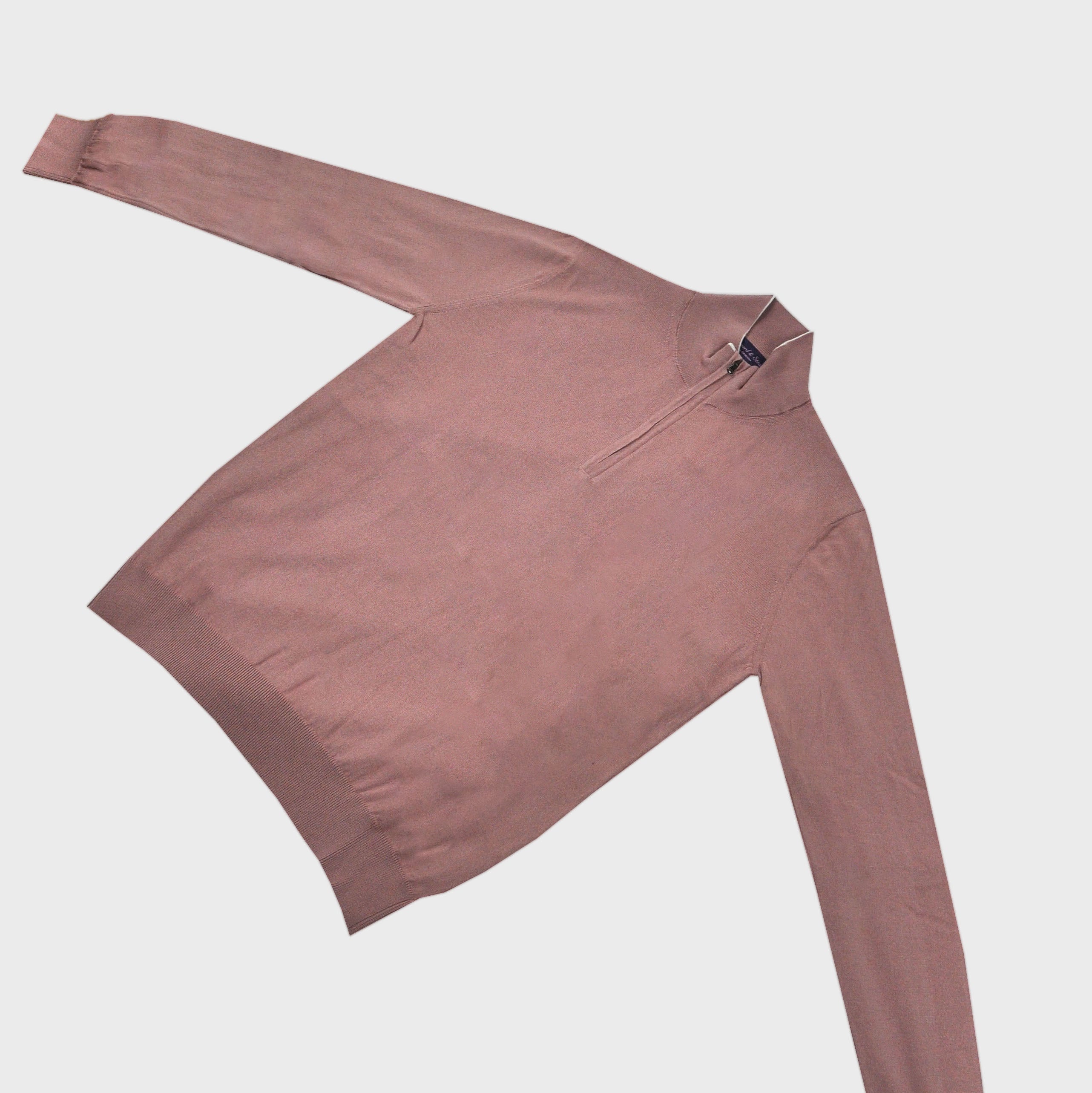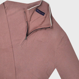 Fine Cotton Quarter Zip Collar in Indian Red with White Trim