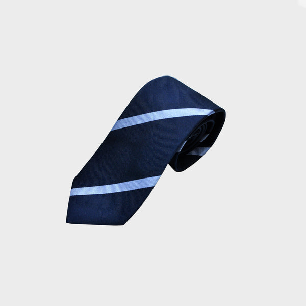 Light Blue Stripes on Navy Reppe Silk Tie