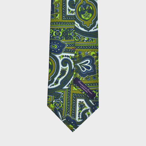 Rich & Bold Paisley Silk Tie in Green, Olive & Blue
