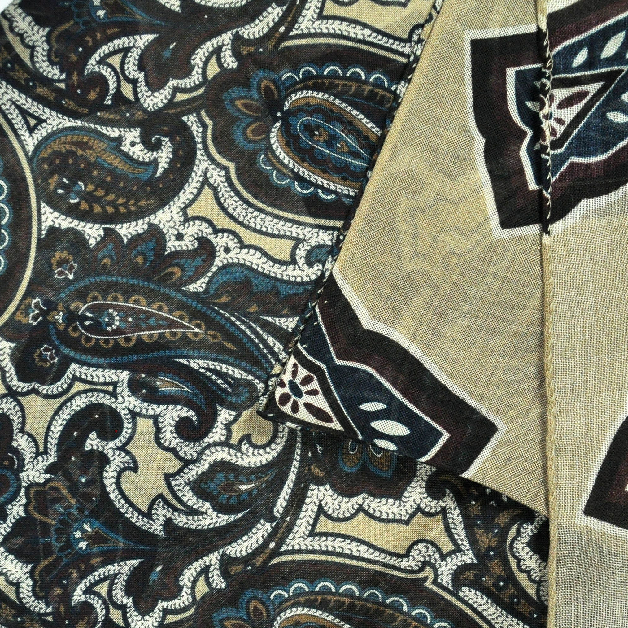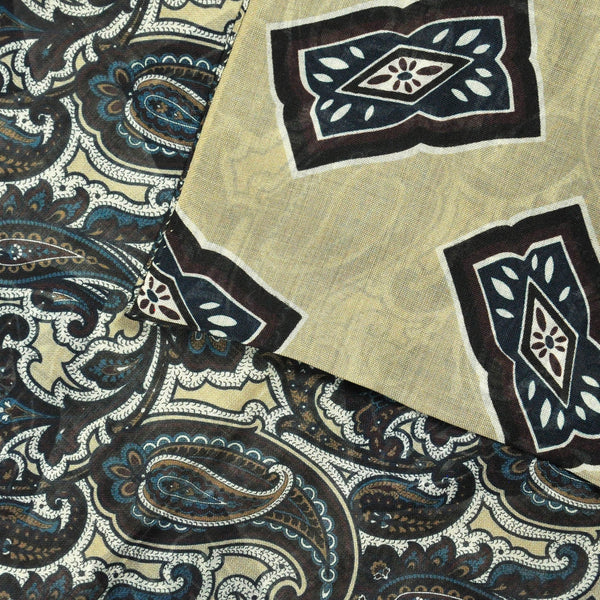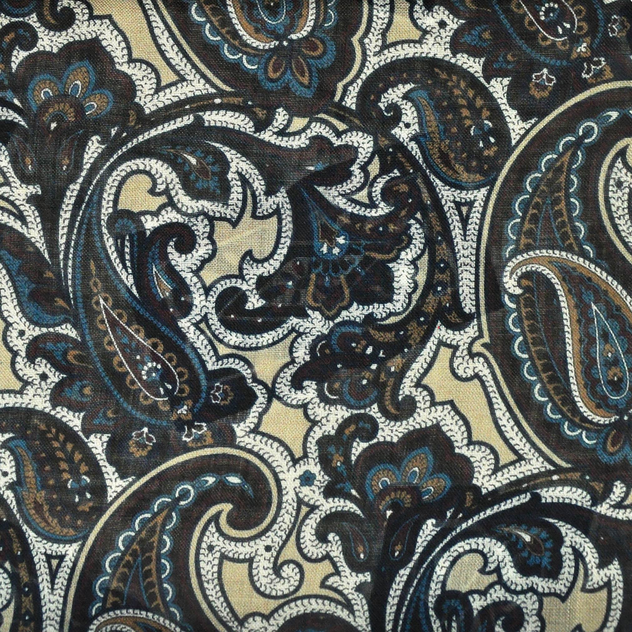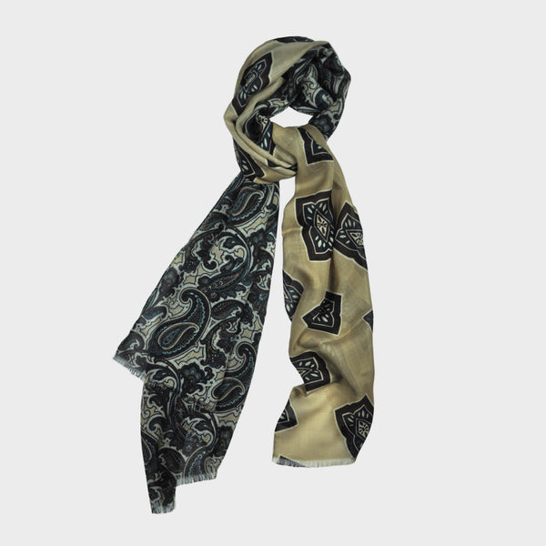 Wool Silk Double Panel Scarf in Paisley & Florets in Brown & Cream