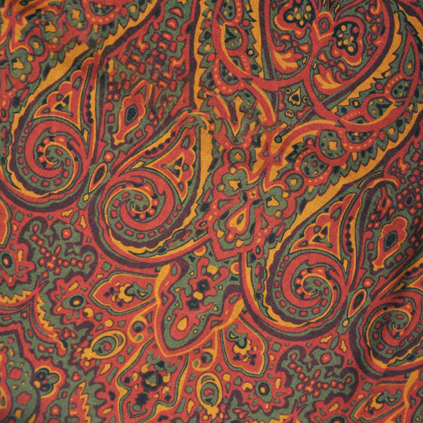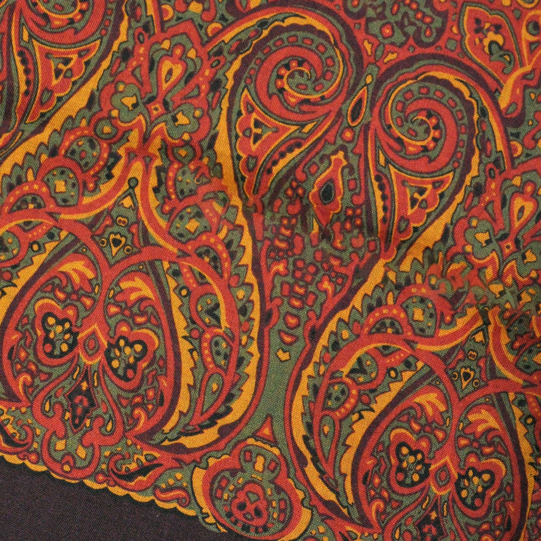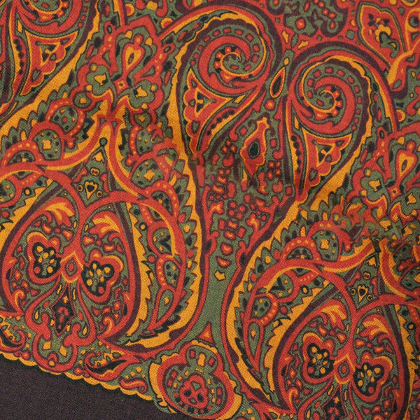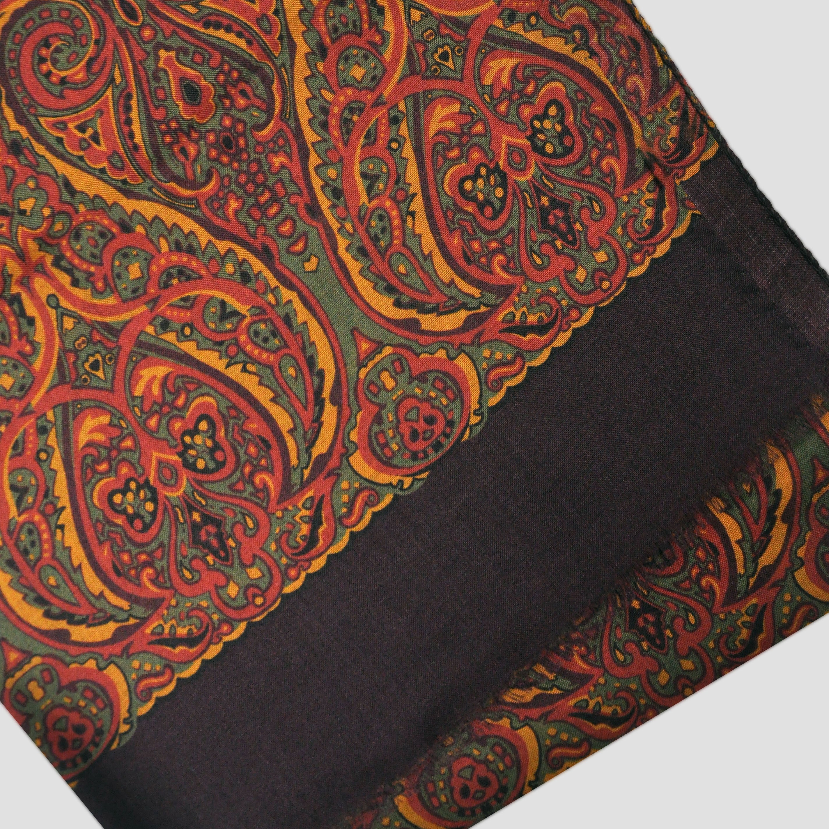 Wool Silk Paisley Scarf in Olive, Ochre & Brown