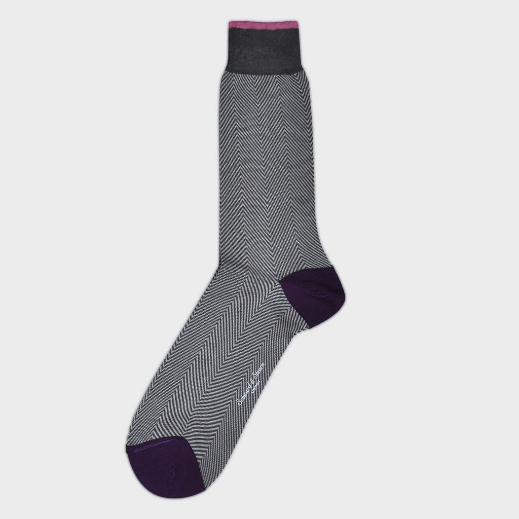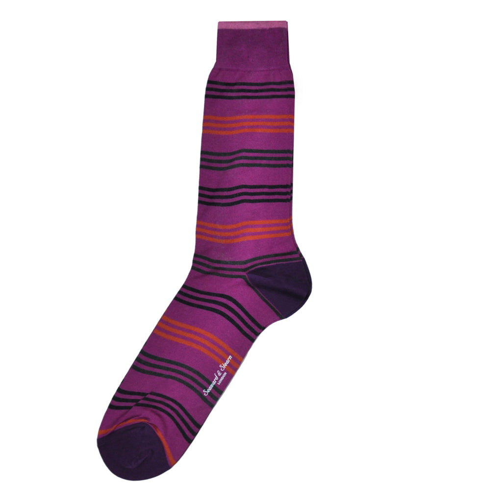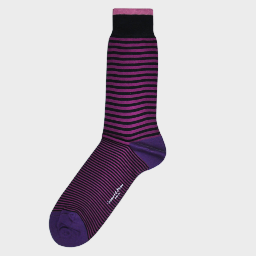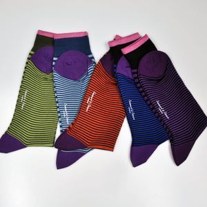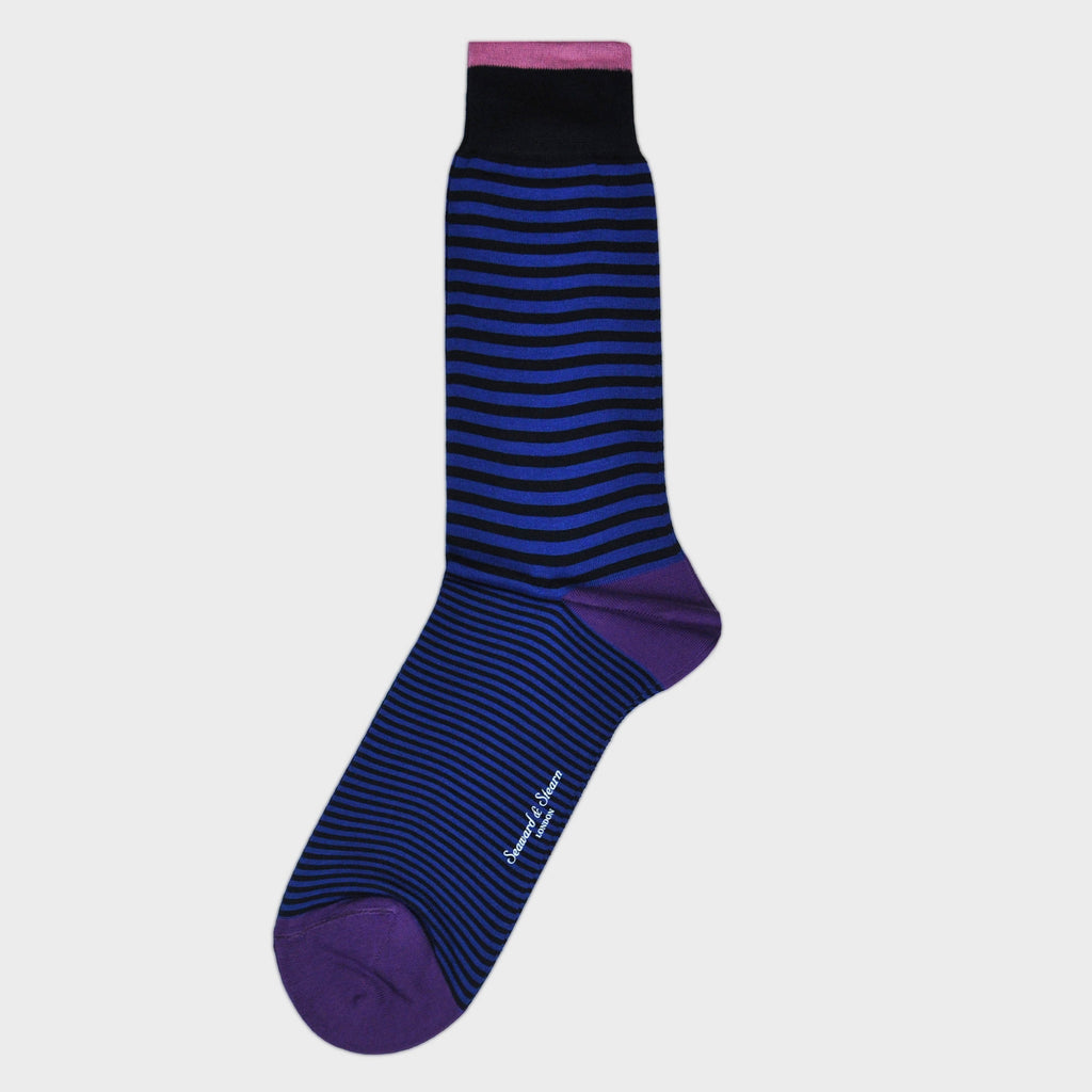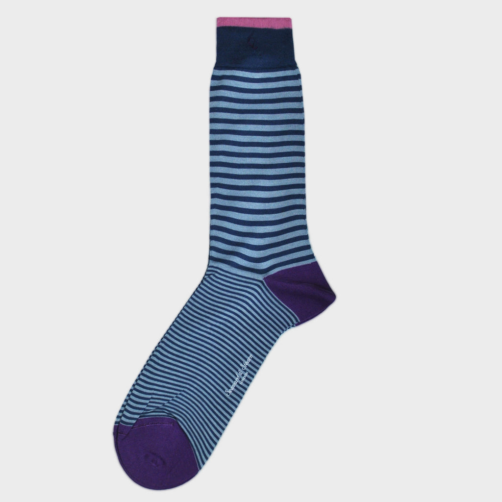 Narrow Blue Stripes on Purple Fine Cotton Socks