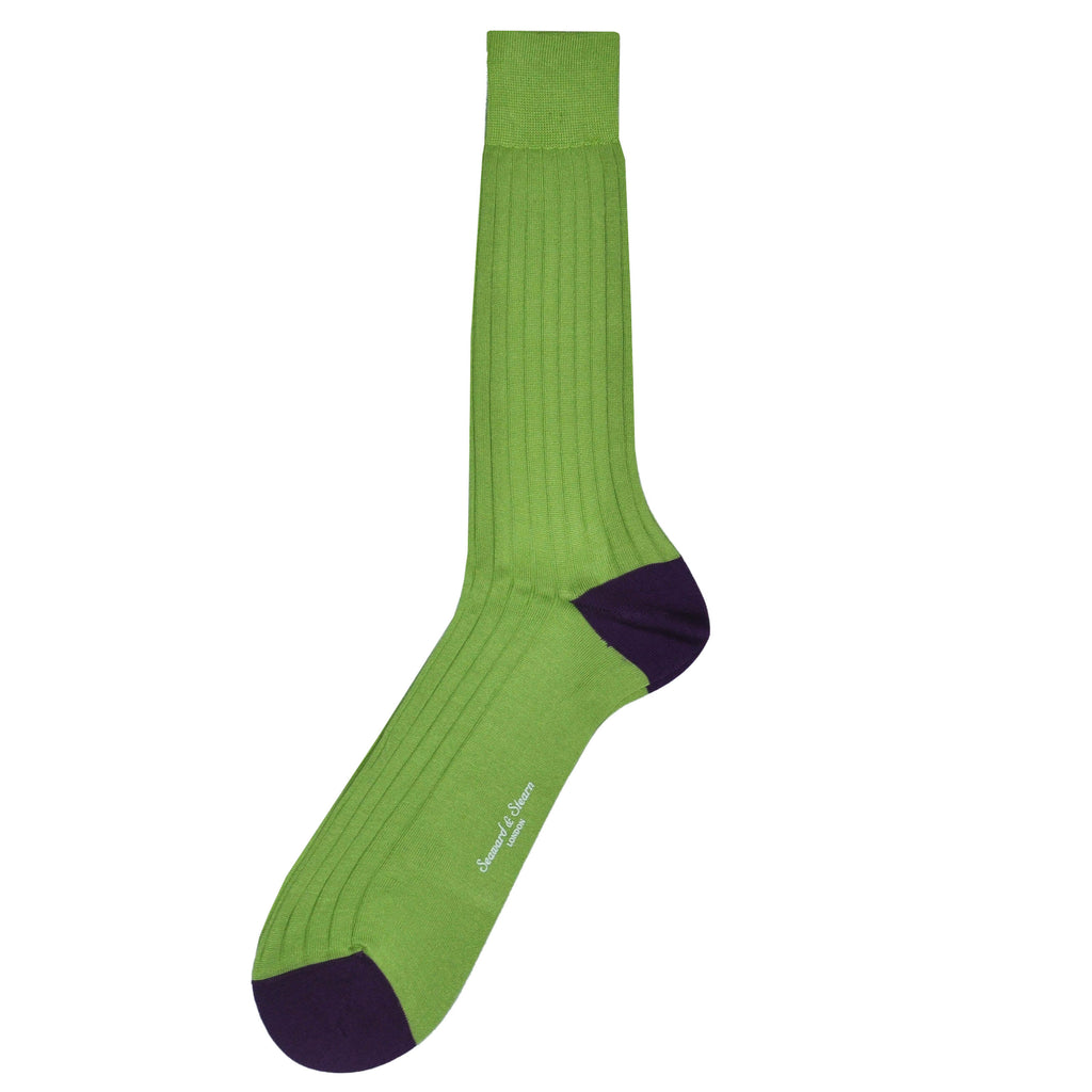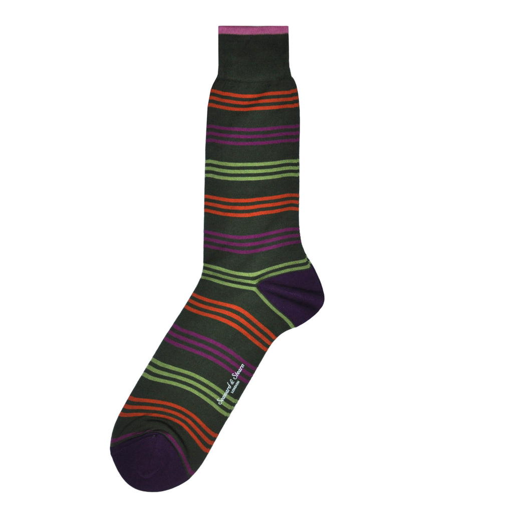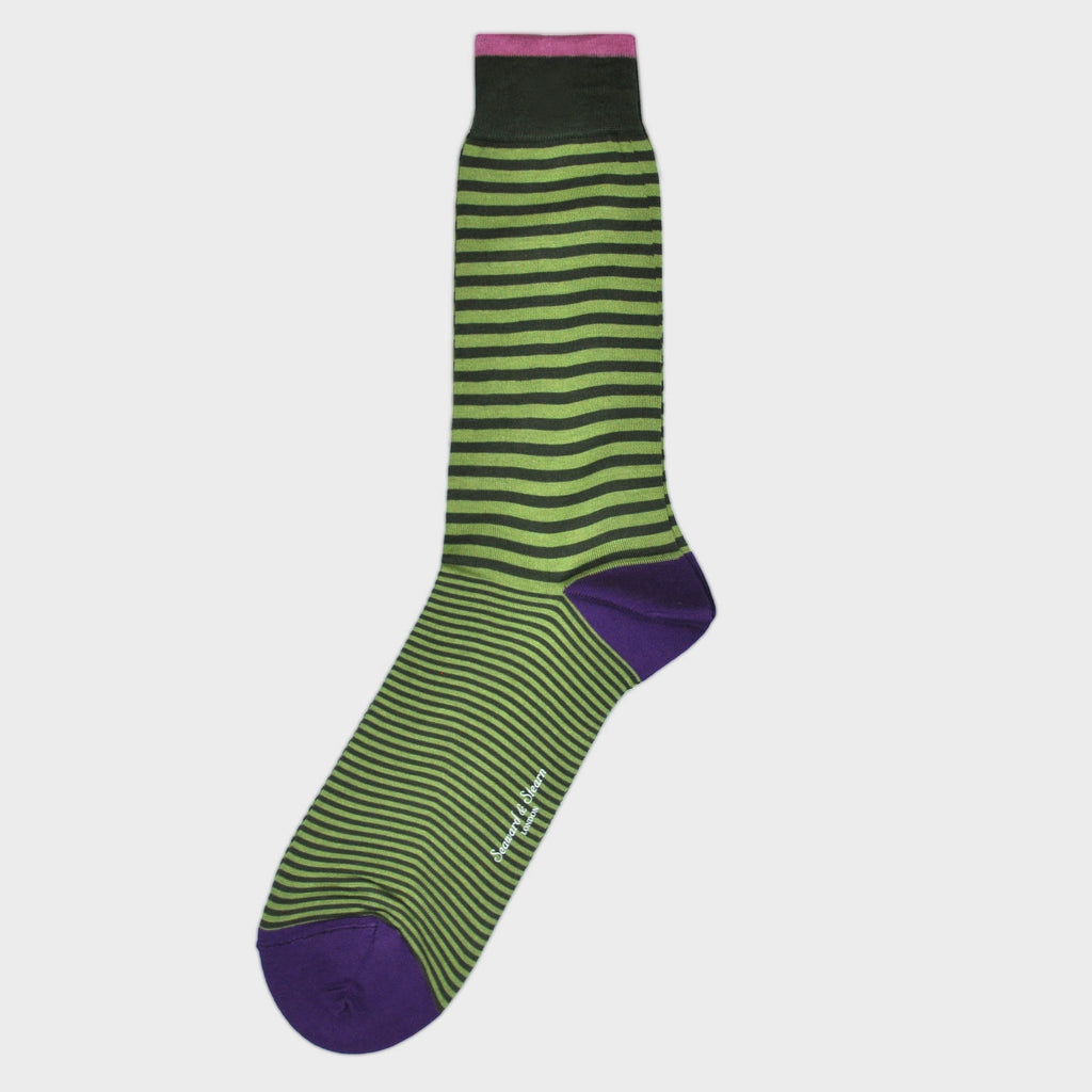 Narrow Green Stripes on Lime Fine Cotton Socks