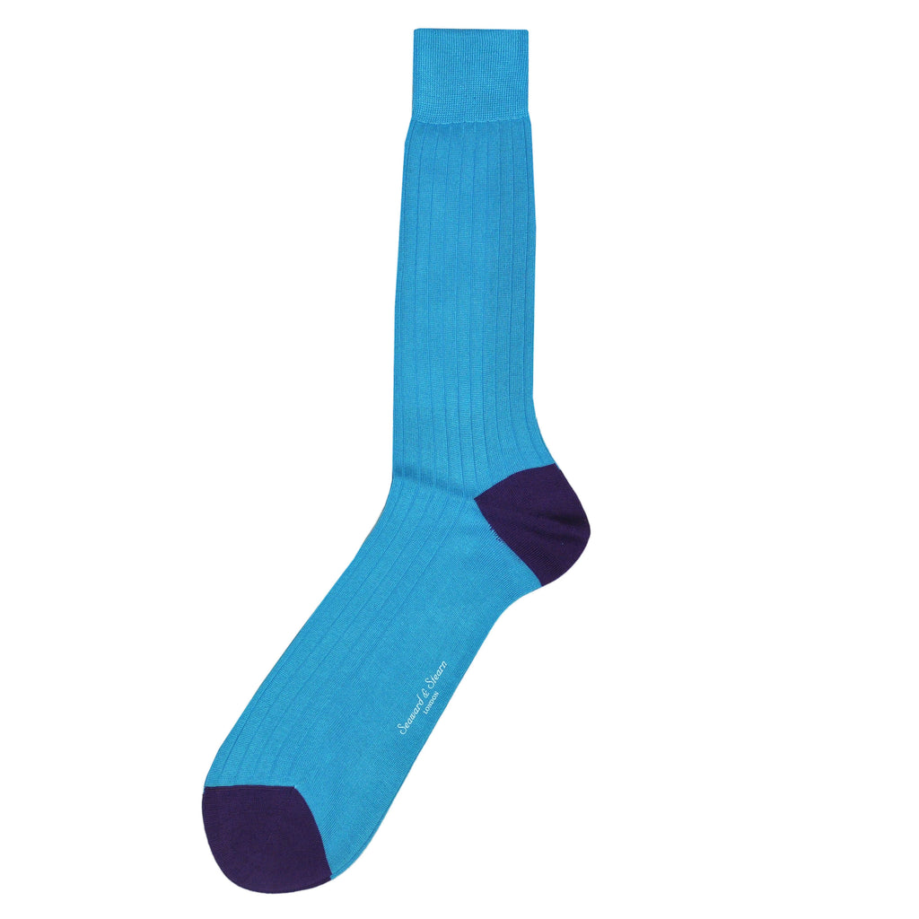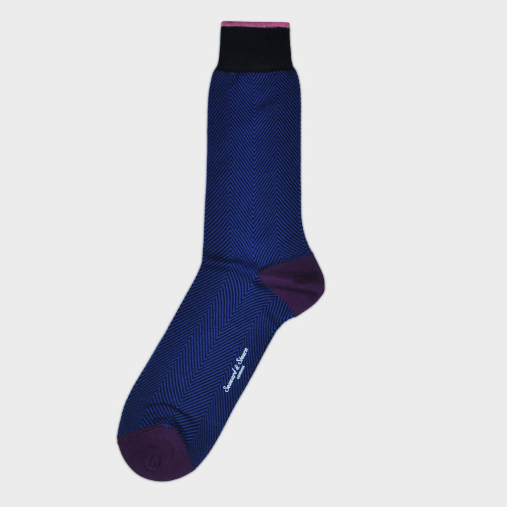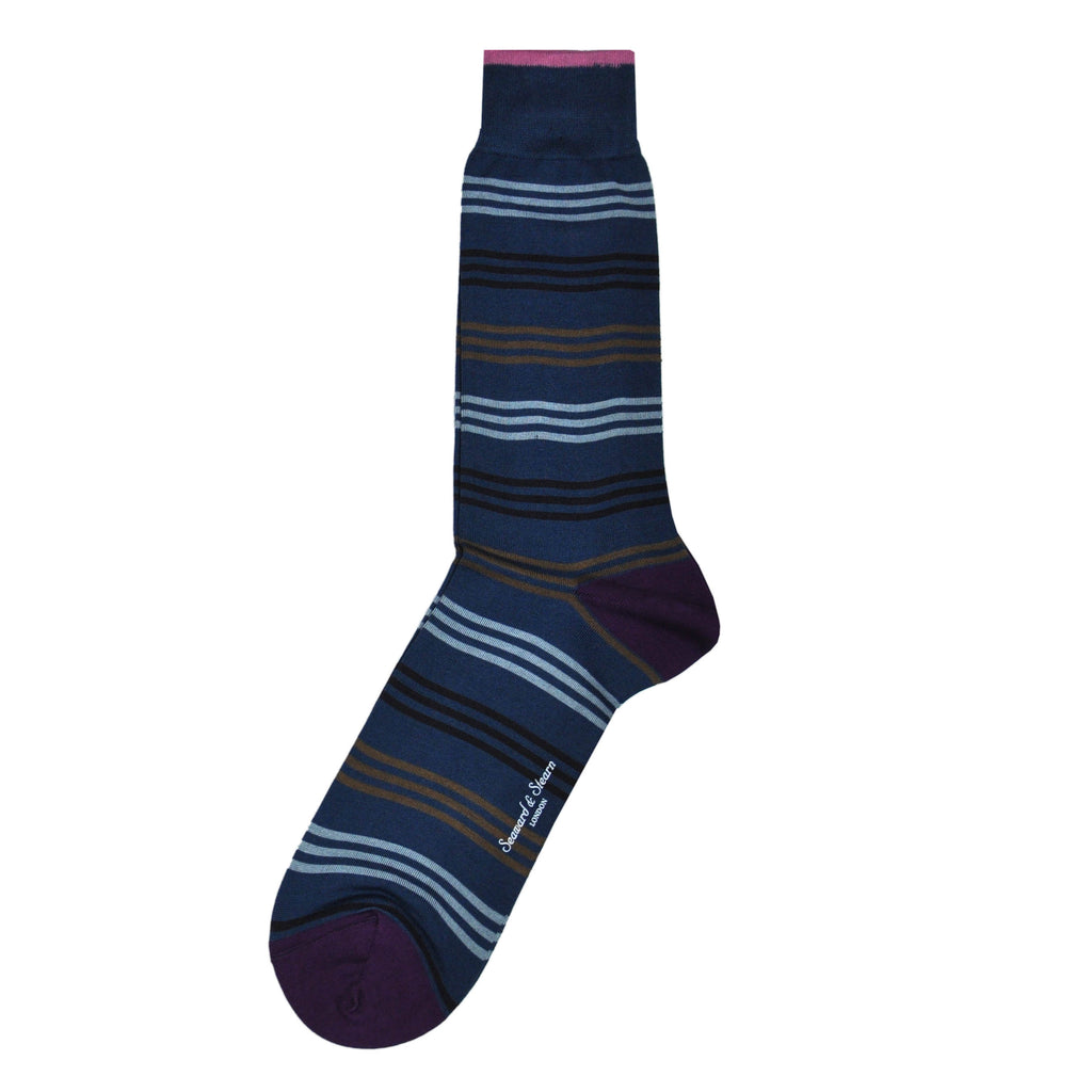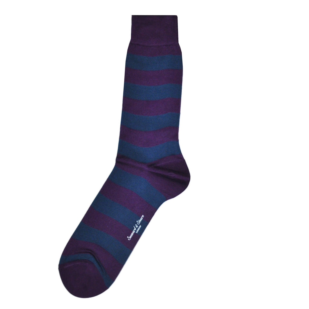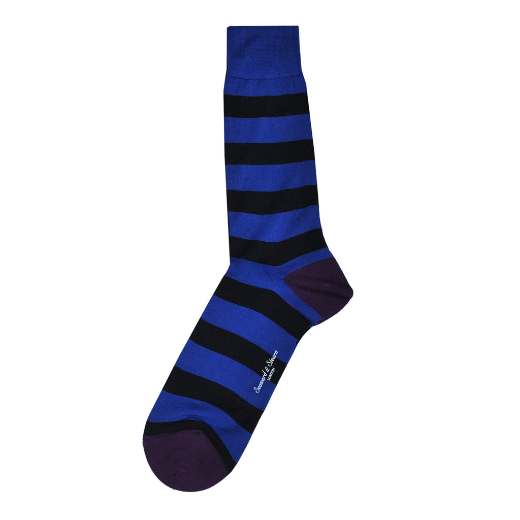 Royal Blue & Navy Bold Stripe Fine Cotton Socks
