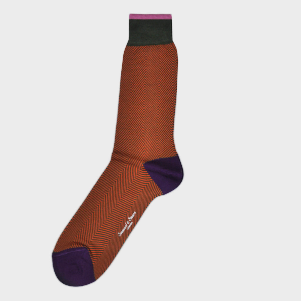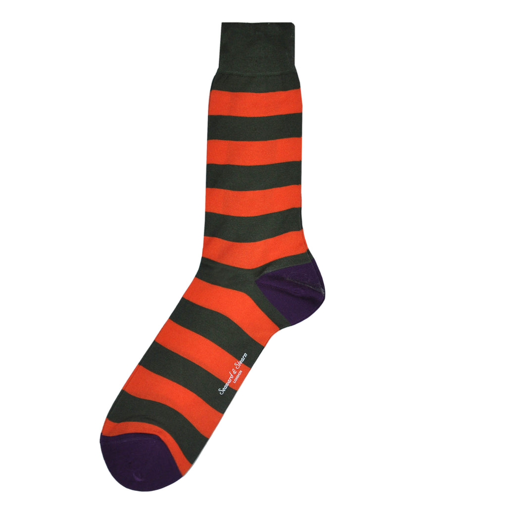 Narrow Brown Stripes on Orange Fine Cotton Socks