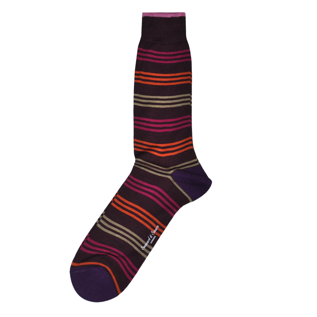 Dark Claret & Pink Bold Stripe Fine Cotton Socks