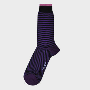 Narrow Blue Stripes on Purple Fine Cotton Socks