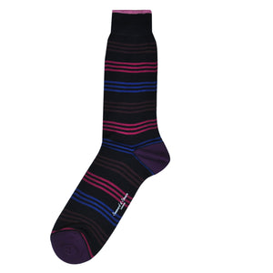 Narrow Stripes on Navy Blue Claret Fine Cotton Socks