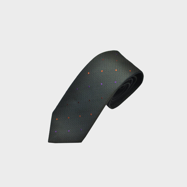 Colourful Dots on Natte Weave Silk Tie in Bottle Green