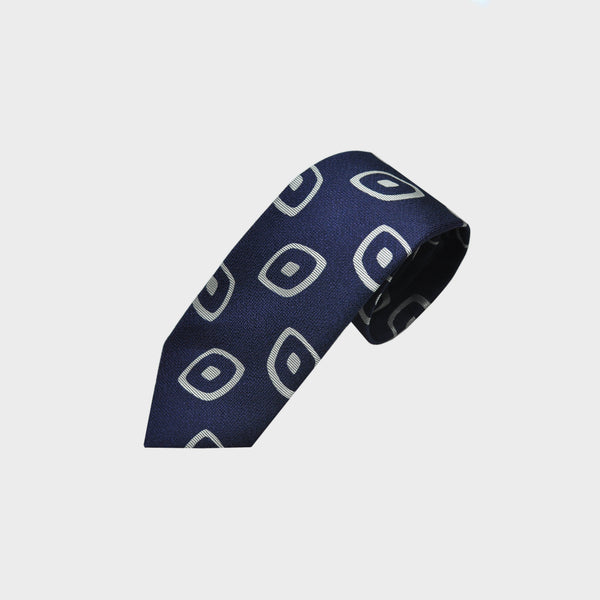 Falling Geometrics Woven Silk Tie in Navy & Grey
