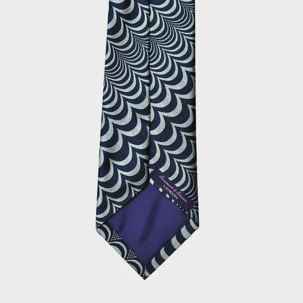 Geometric Wave Woven Silk Tie in Navy & Silver