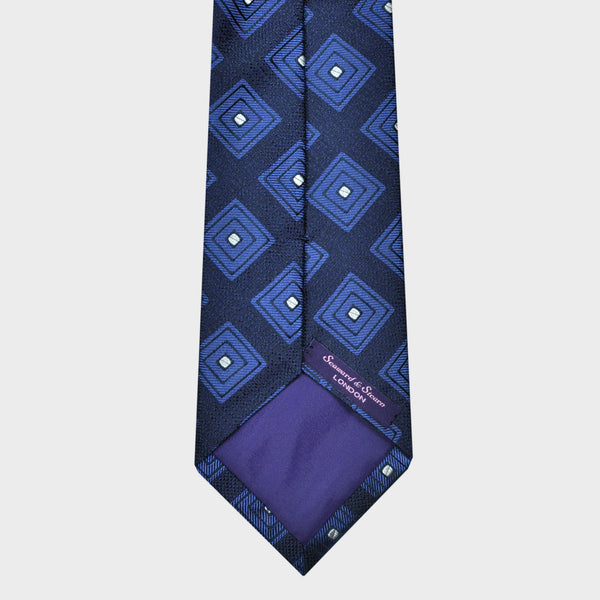 Neat Diamonds Woven Silk Tie in Navy & Blue