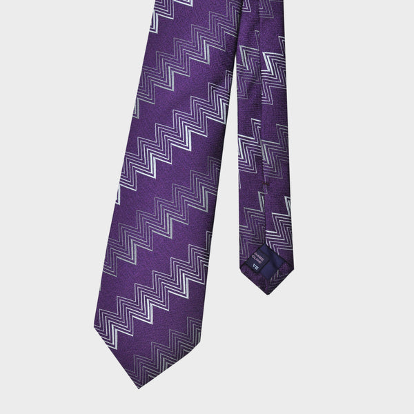 Repeat Zig Zags Woven Silk Tie in Purple & Silver