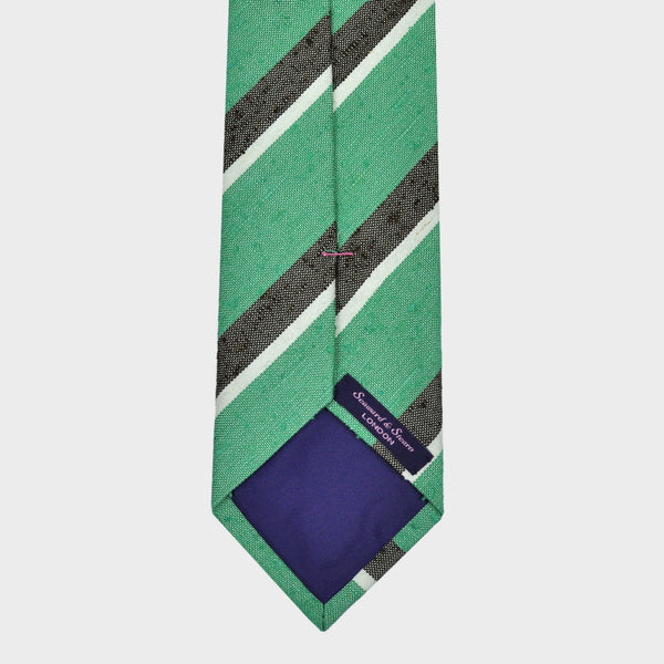 Stripes in Green, Grey & White on Slub Silk Tie