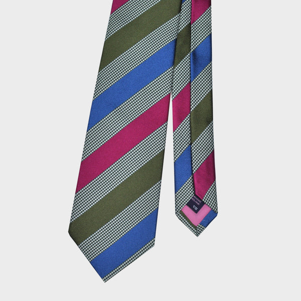 Stripes in Royal Blue, Olive & Pink on Puppy Tooth Silk Tie
