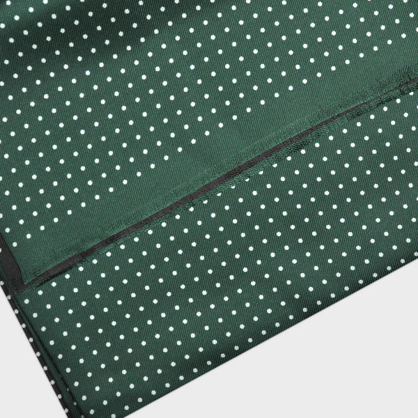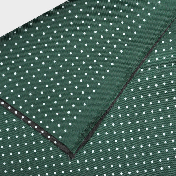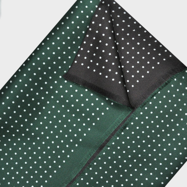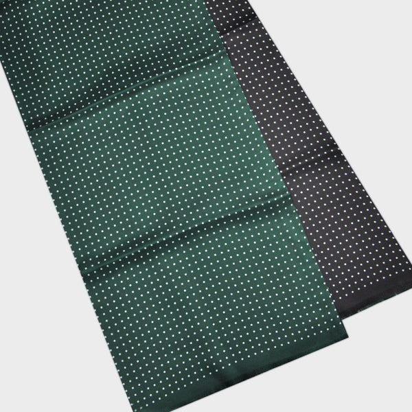 Dotty Double Panel Silk Fringed Scarf Green & Dark Grey