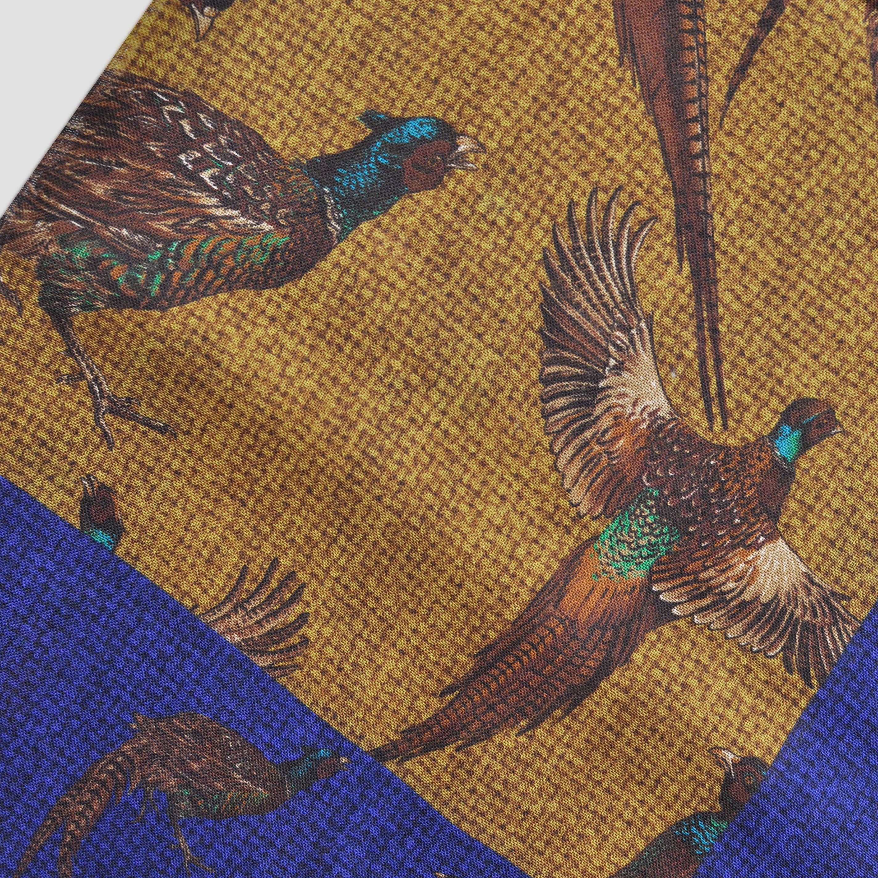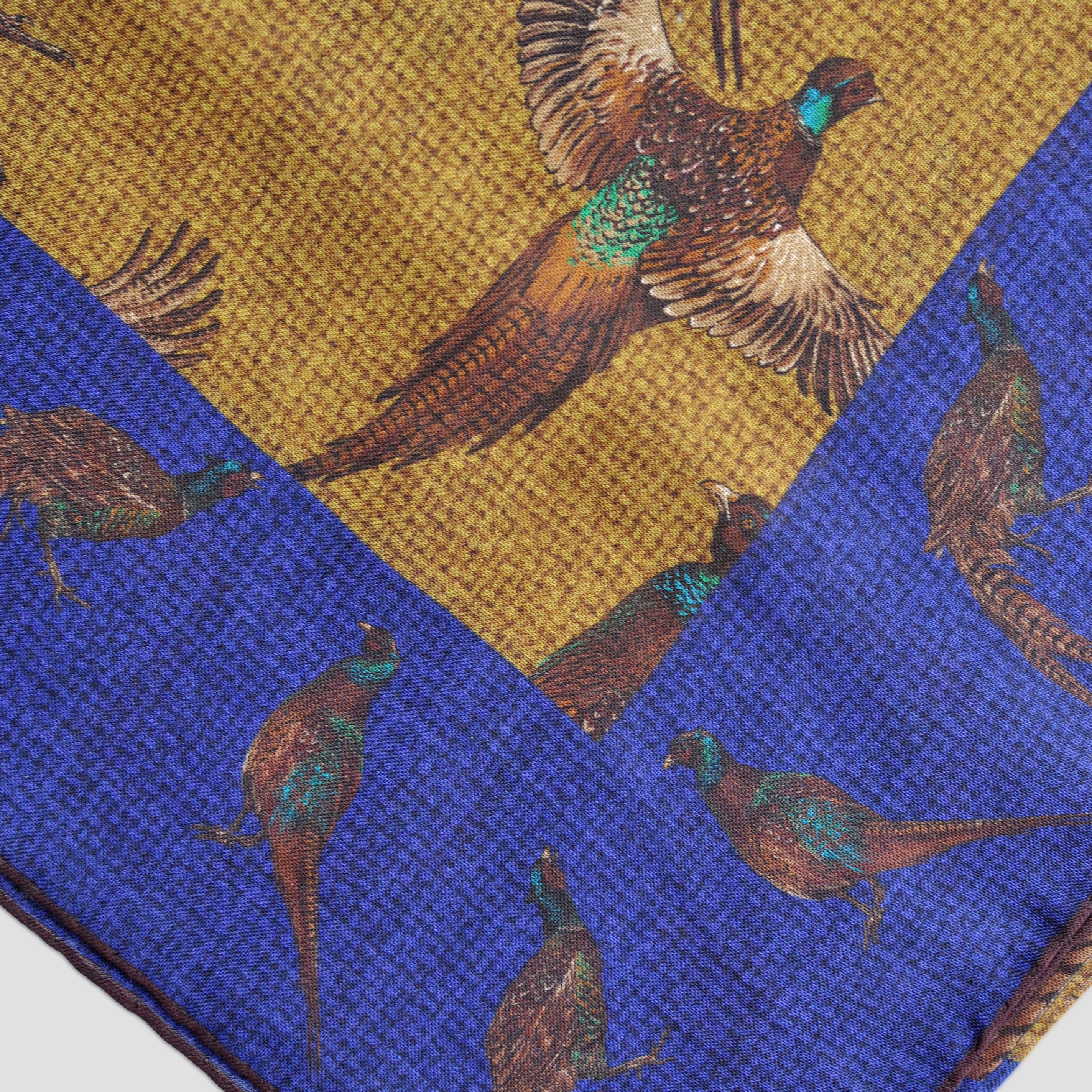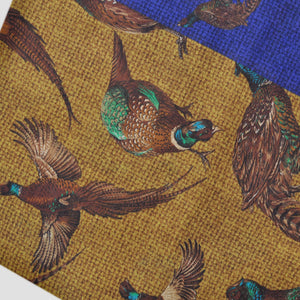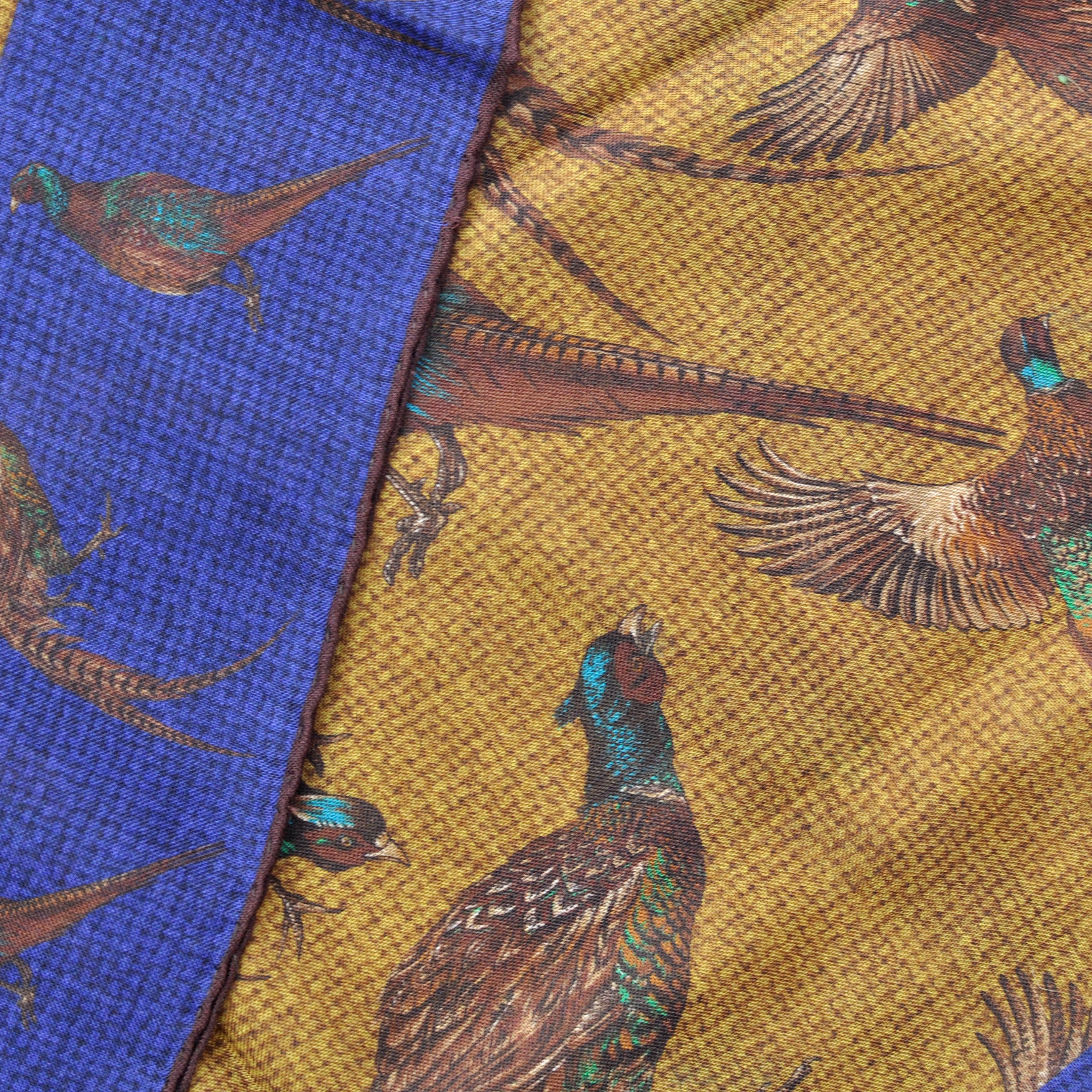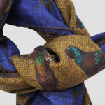 Wool Silk Pheasant Large Square in Blue, Ochre & Brown