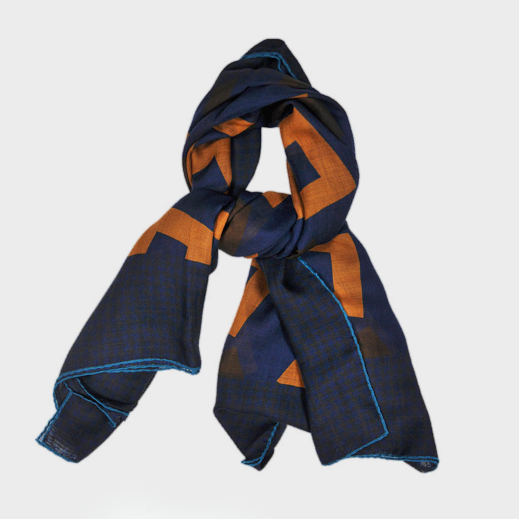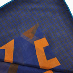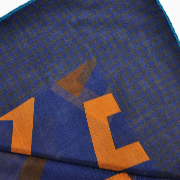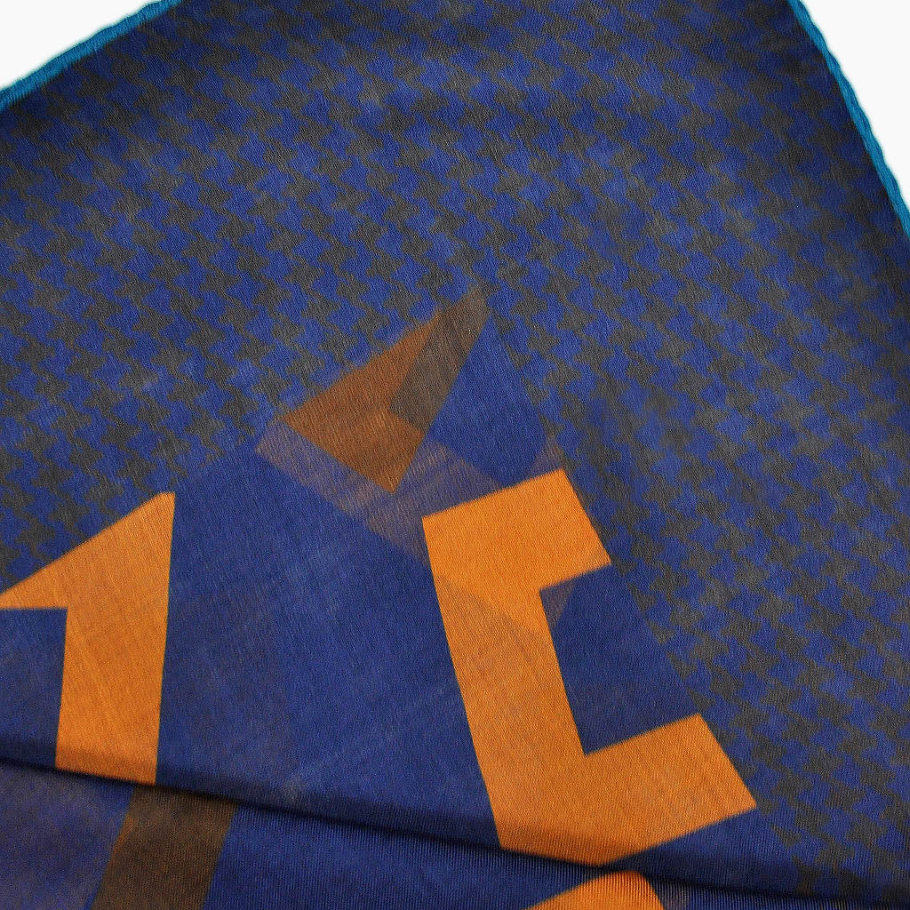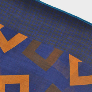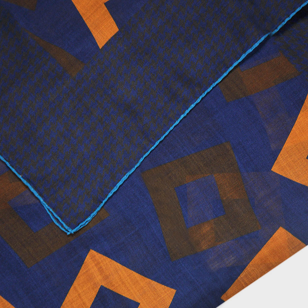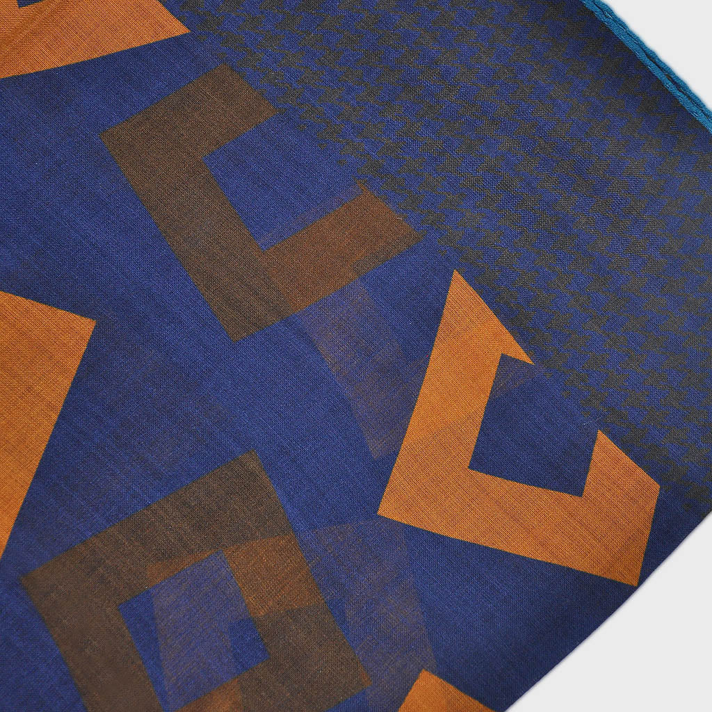 Wool Silk Geo's with Houndstooth Border Large Square in Blue & Brown